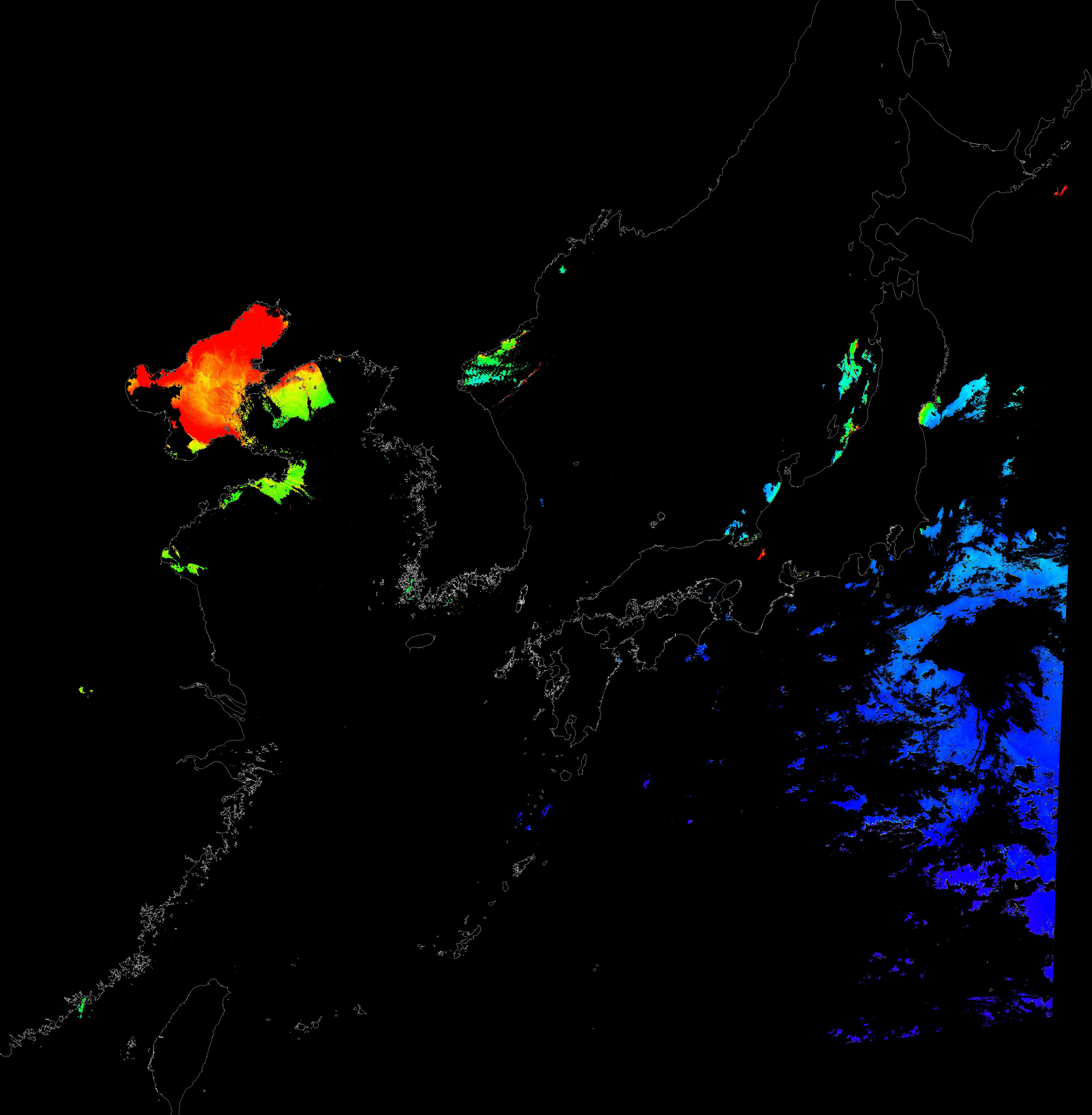 o 2015년 12월 15일 천리안 GOCI 클로로필 a 위성영상입니다.
