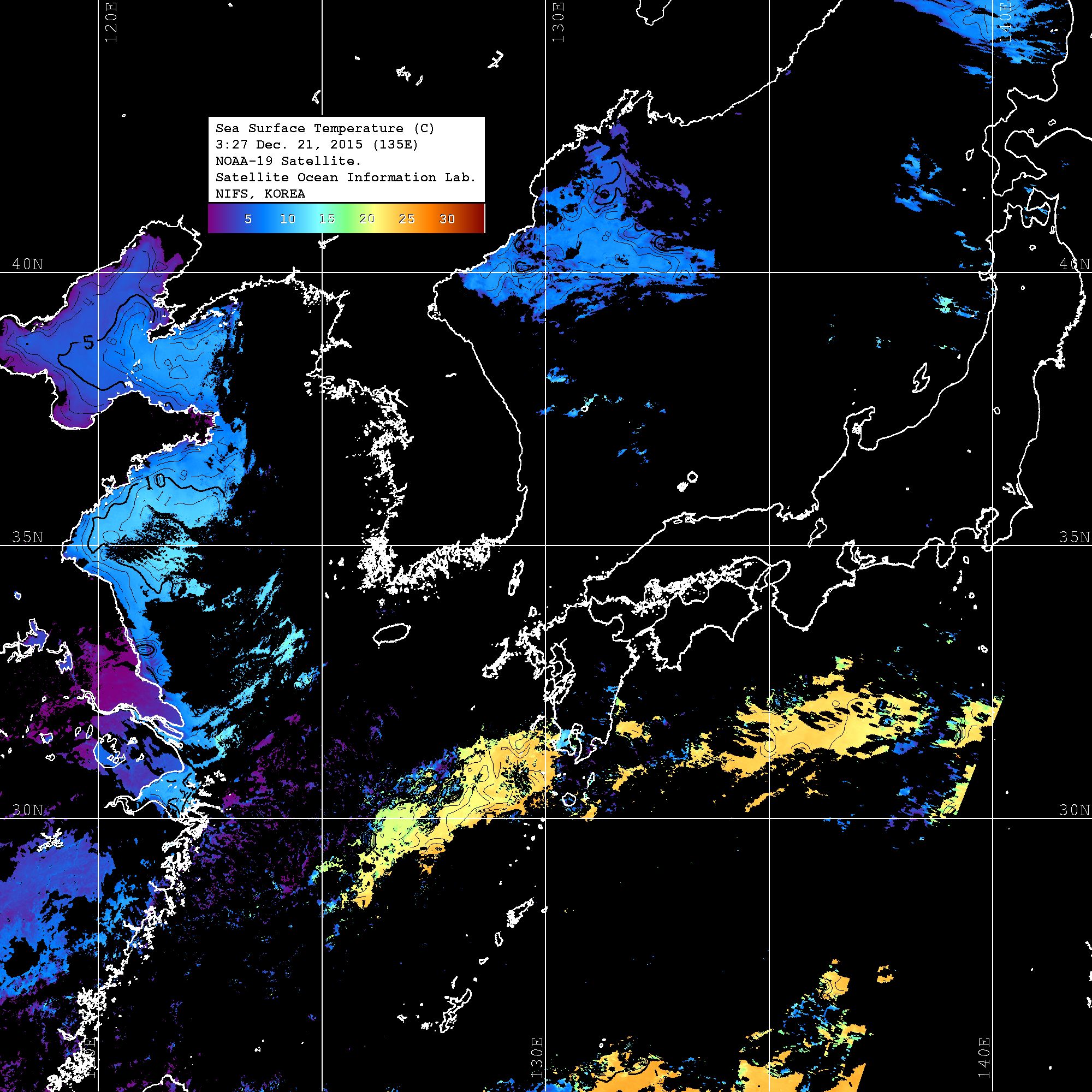 o 영상 시간 및 수온분포는 범례를 참고하시기 바랍니다.