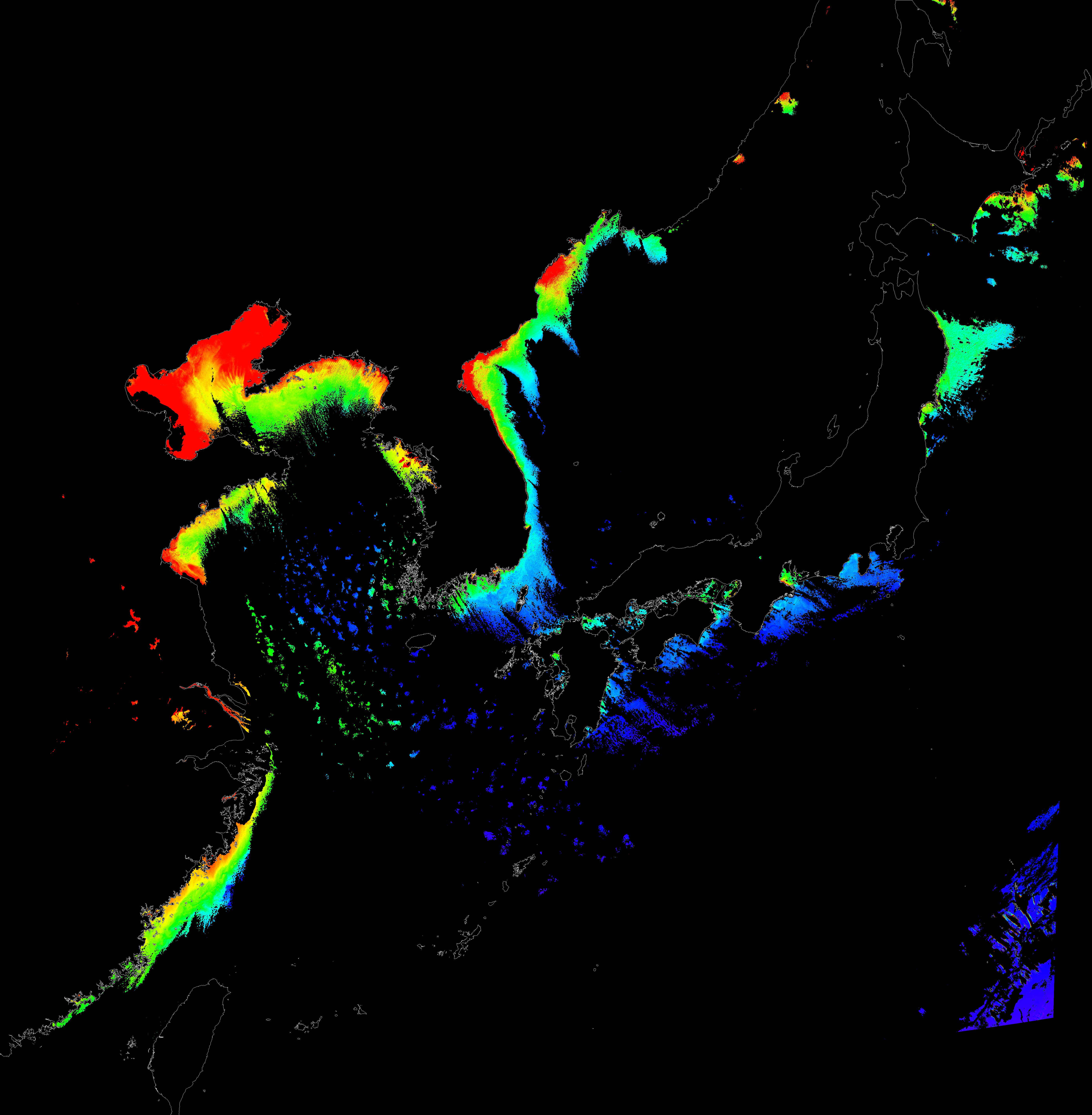 o 2015년 12월 17일 천리안 GOCI 클로로필 a 위성영상입니다.