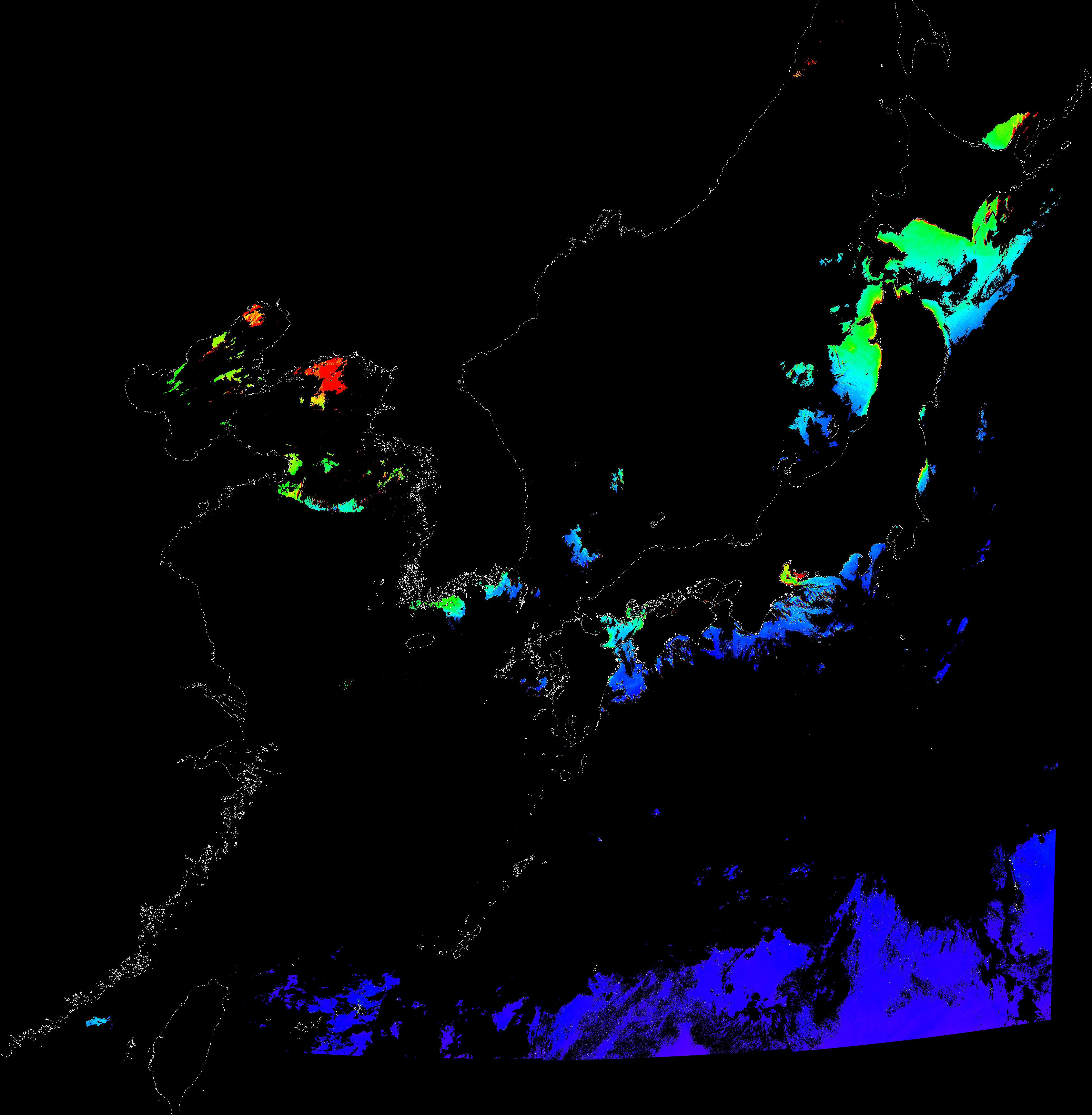 o 2015년 12월 24일 천리안 GOCI 클로로필 a 위성영상입니다.