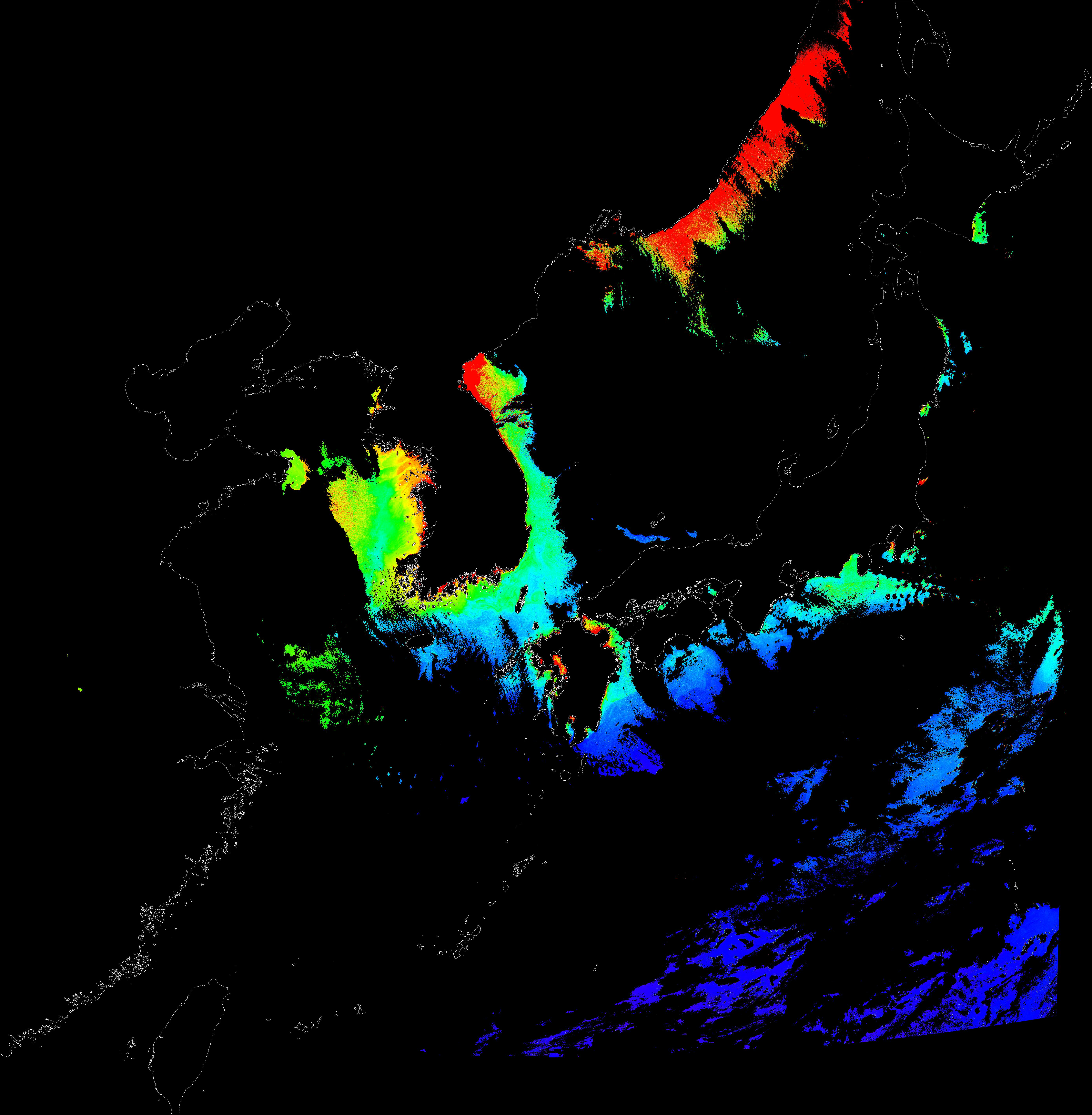 o 2015년 12월 25일 천리안 GOCI 클로로필 a 위성영상입니다.