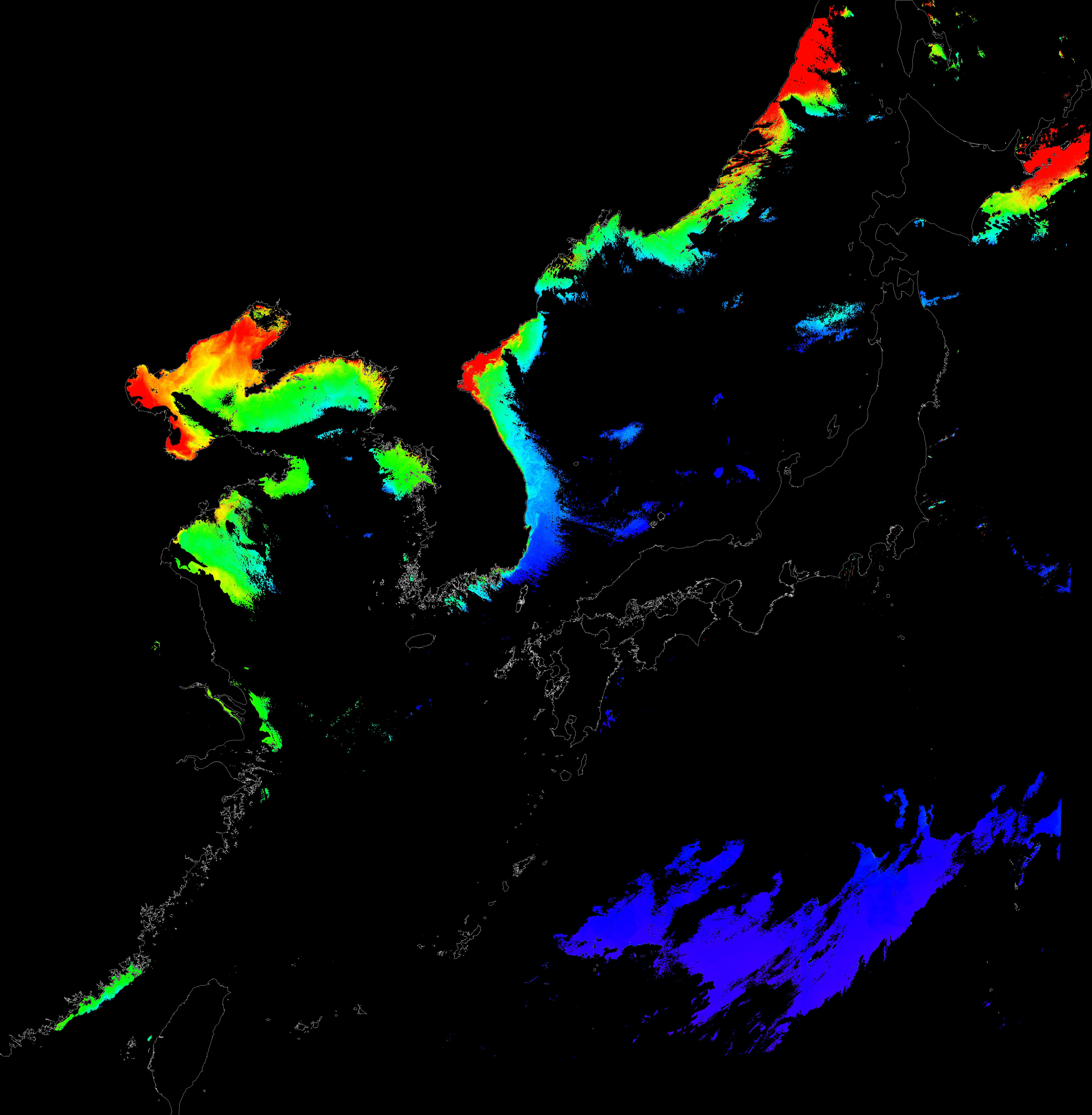 o 2016년 1월 8일 천리안 GOCI 클로로필 a 위성영상입니다.