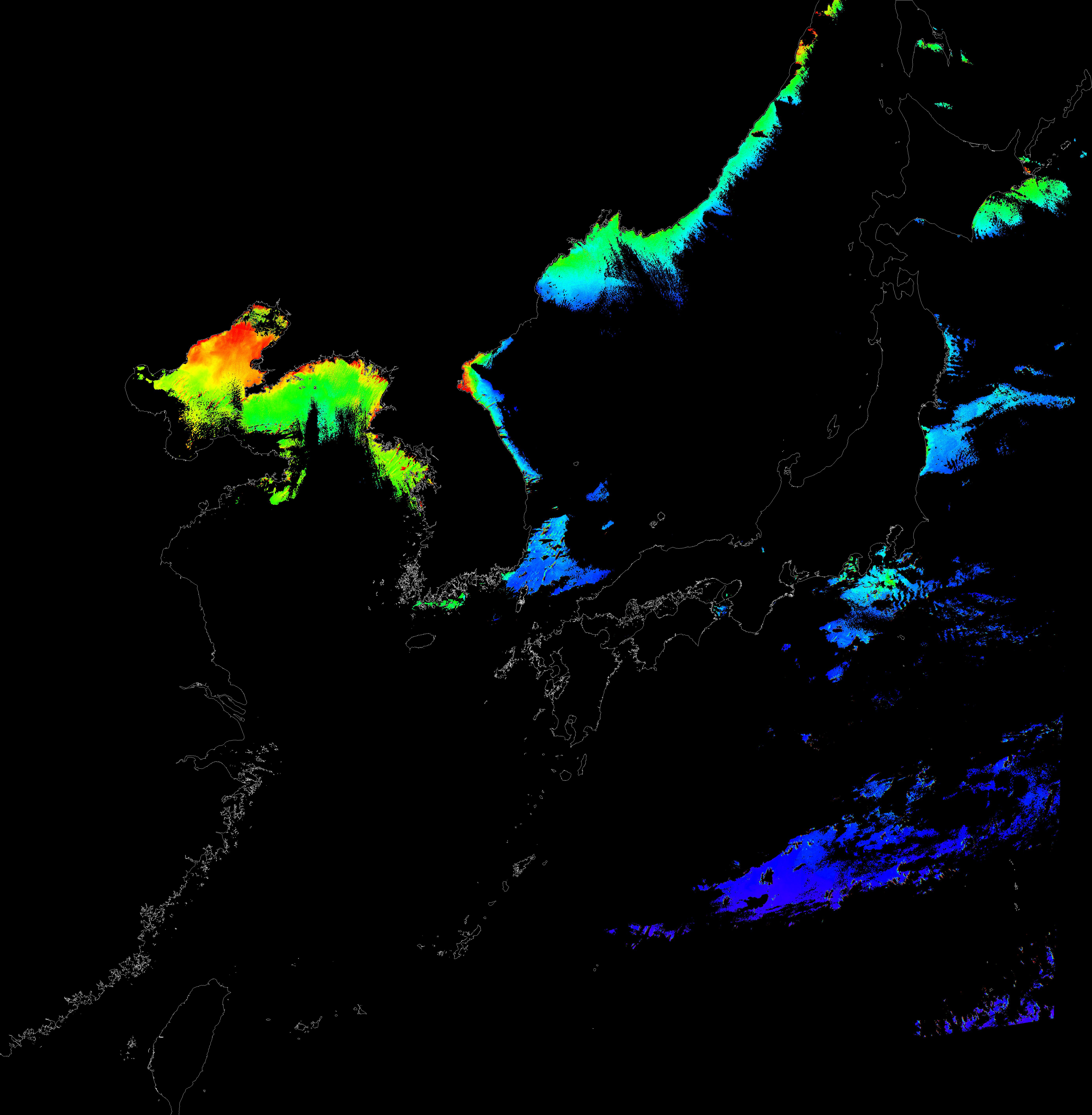 o 2016년 1월 11일 천리안 GOCI 클로로필 a 위성영상입니다.