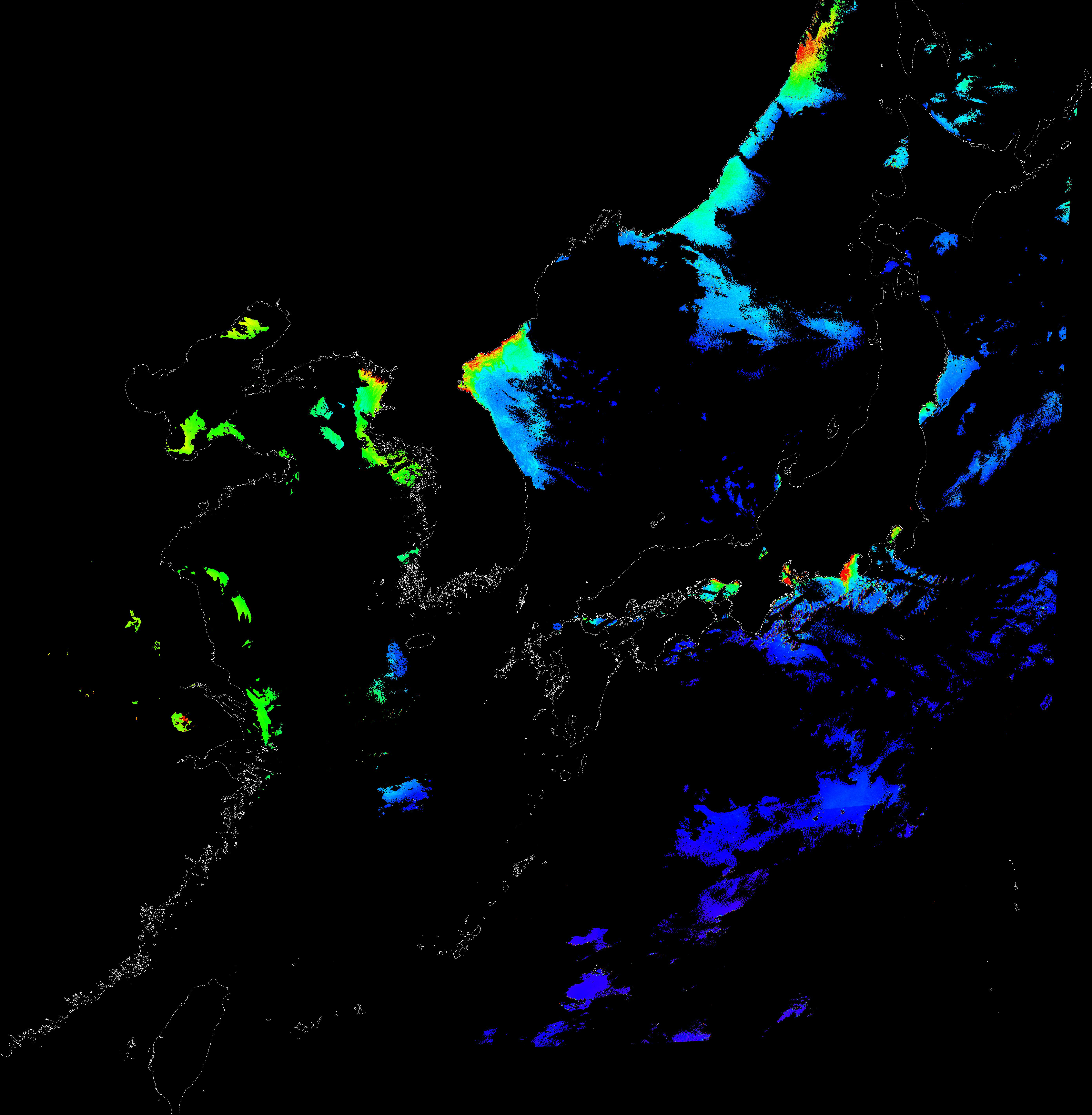 o 2016년 1월 15일 천리안 GOCI 클로로필 a 위성영상입니다.