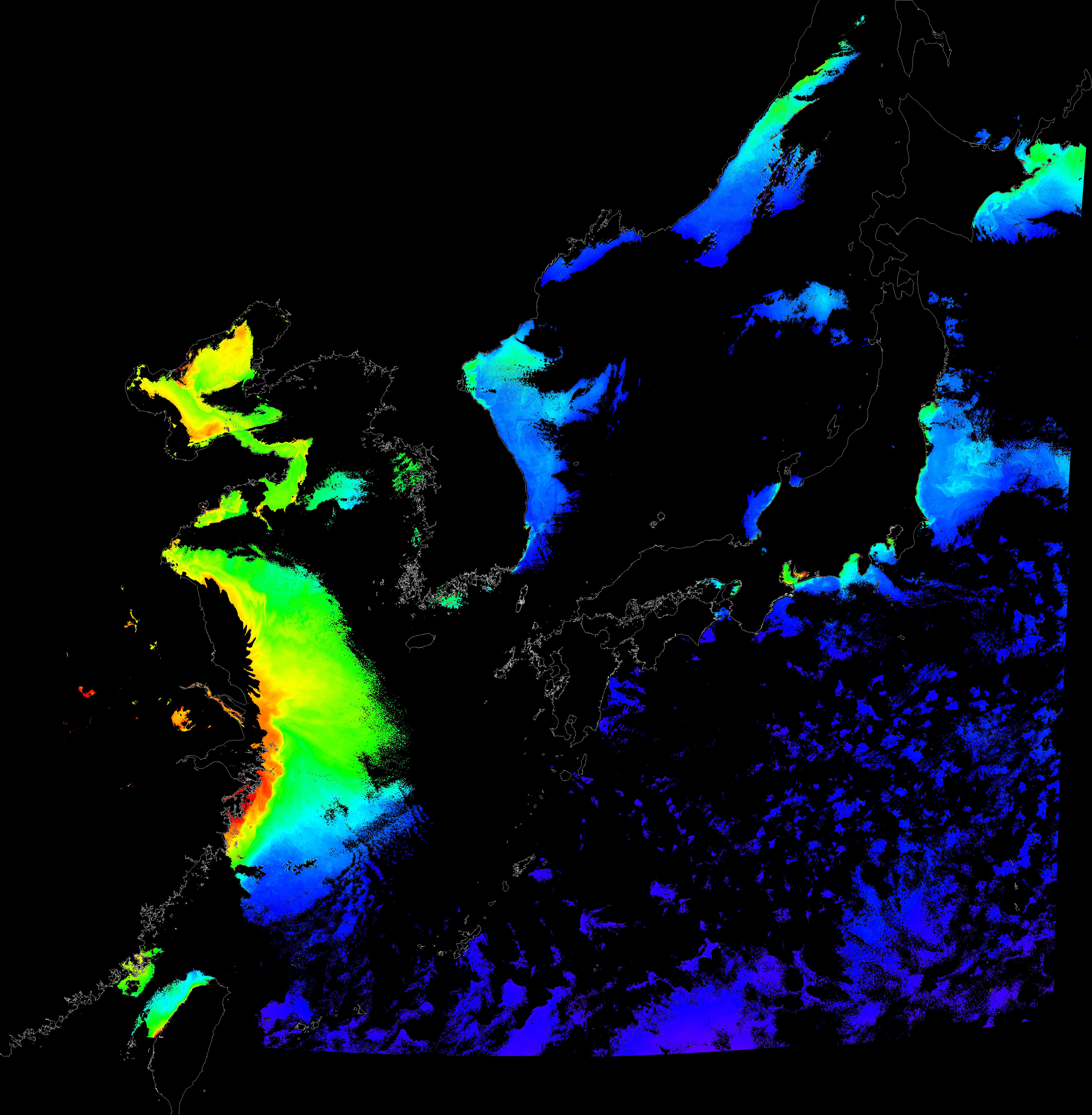 o 2016년 1월 26일 천리안 GOCI 클로로필 a 위성영상입니다.