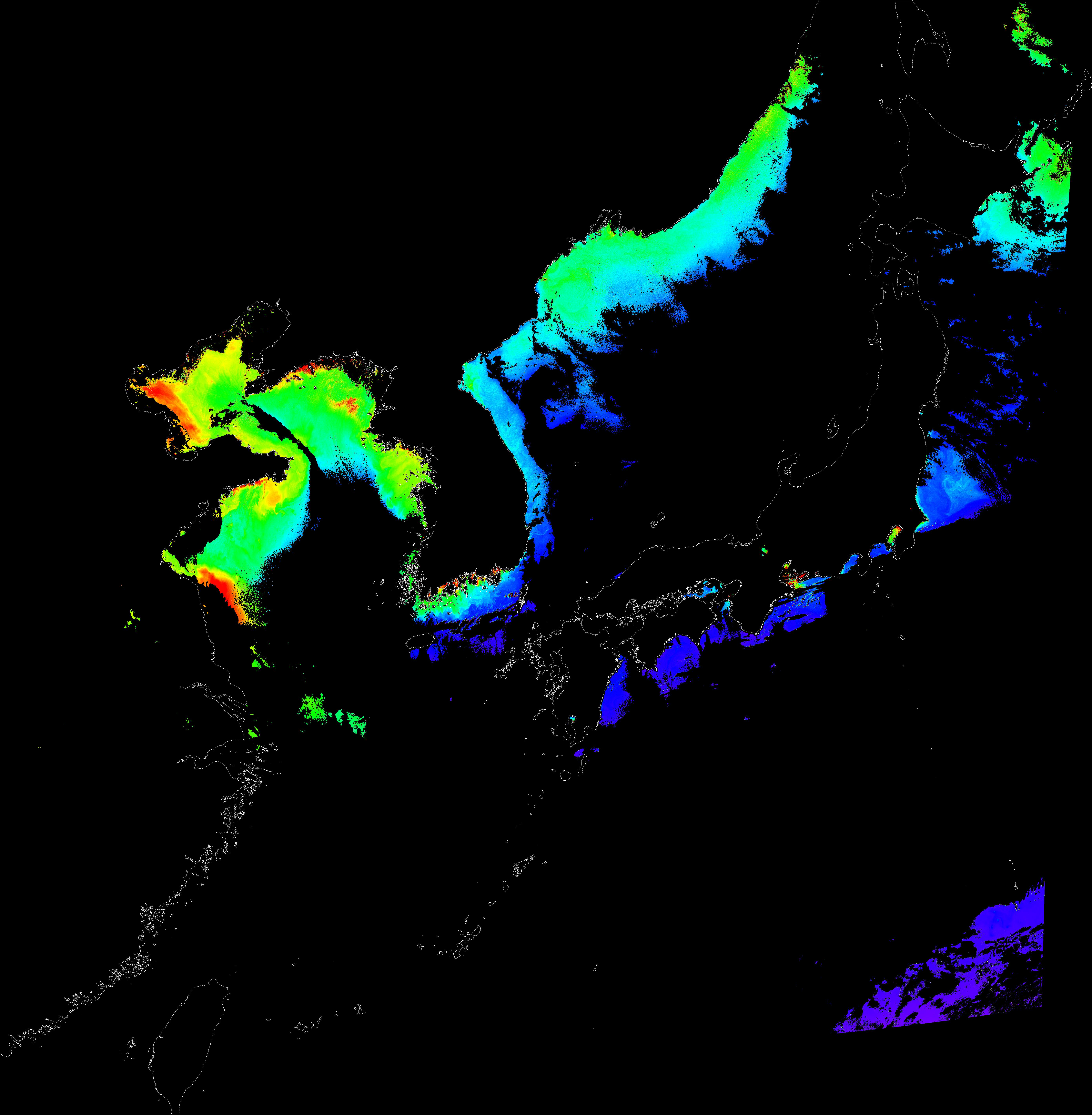 o 2016년 2월 2일 천리안 GOCI 클로로필 a 위성영상입니다.
