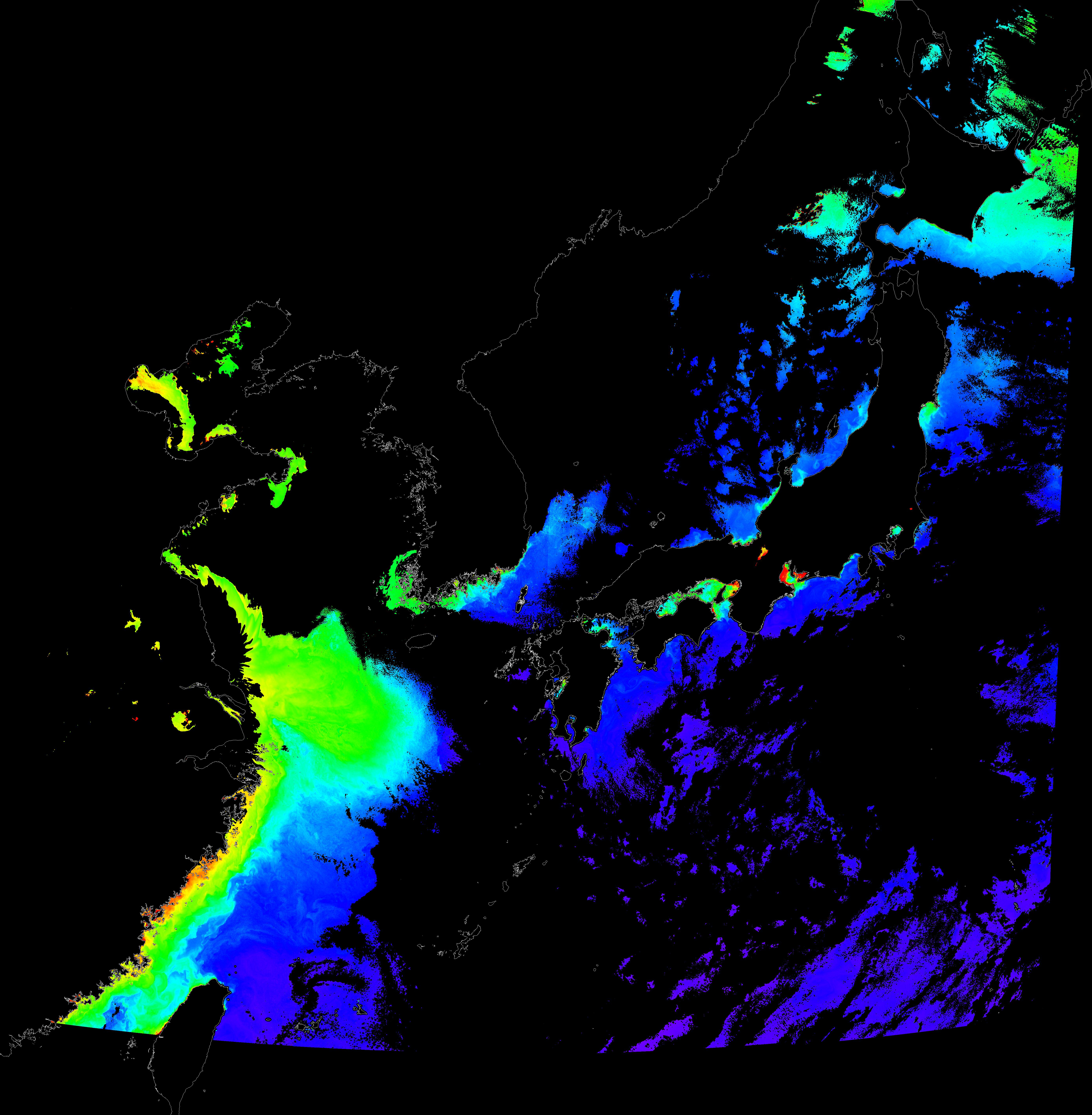 o 2016년 2월 8일 천리안 GOCI 클로로필 a 위성영상입니다.