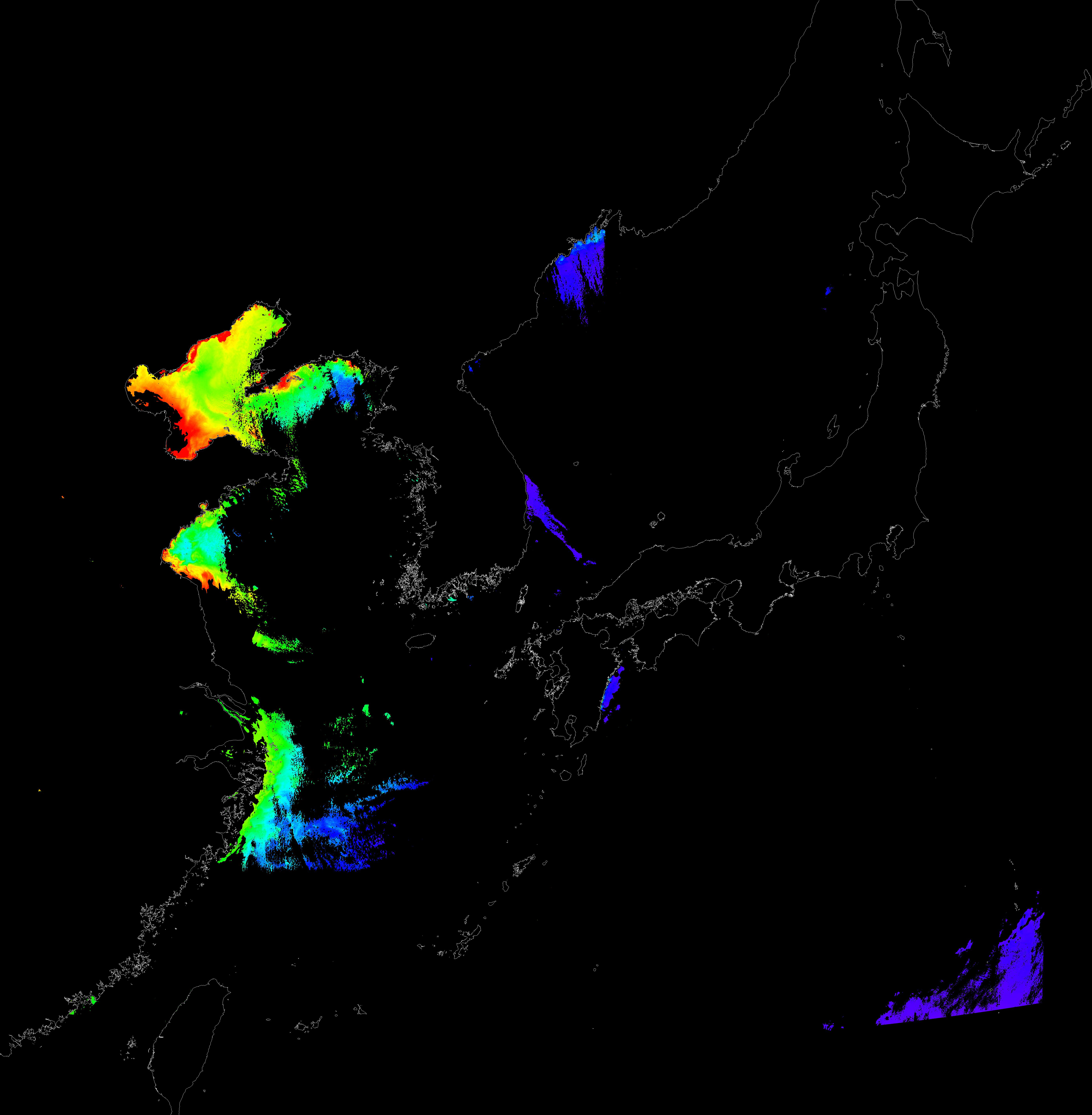 o 2016년 2월 29일 천리안 GOCI 클로로필 a 위성영상입니다.
