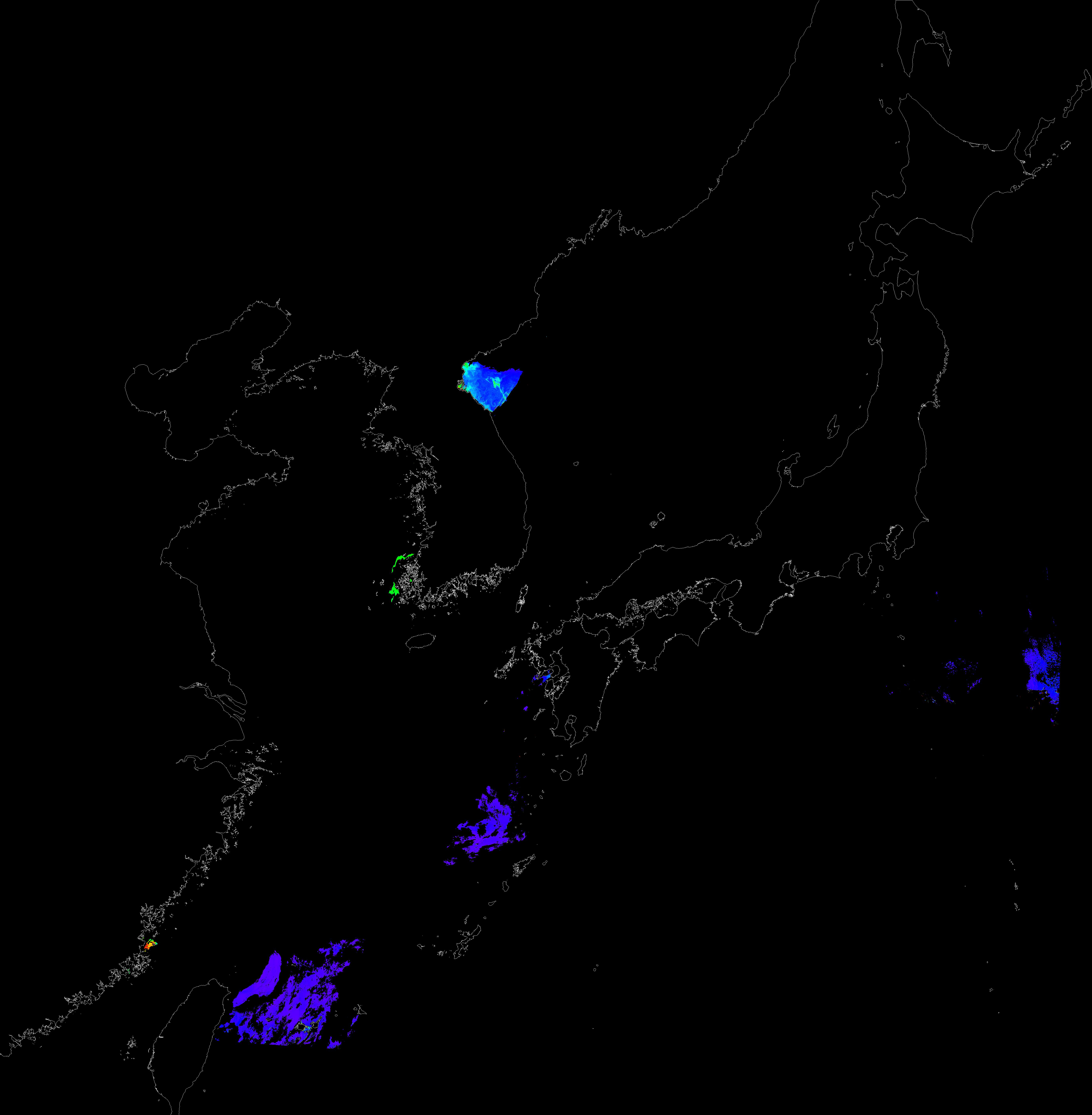 o 2016년 3월 6일 천리안 GOCI 클로로필 a 위성영상입니다.