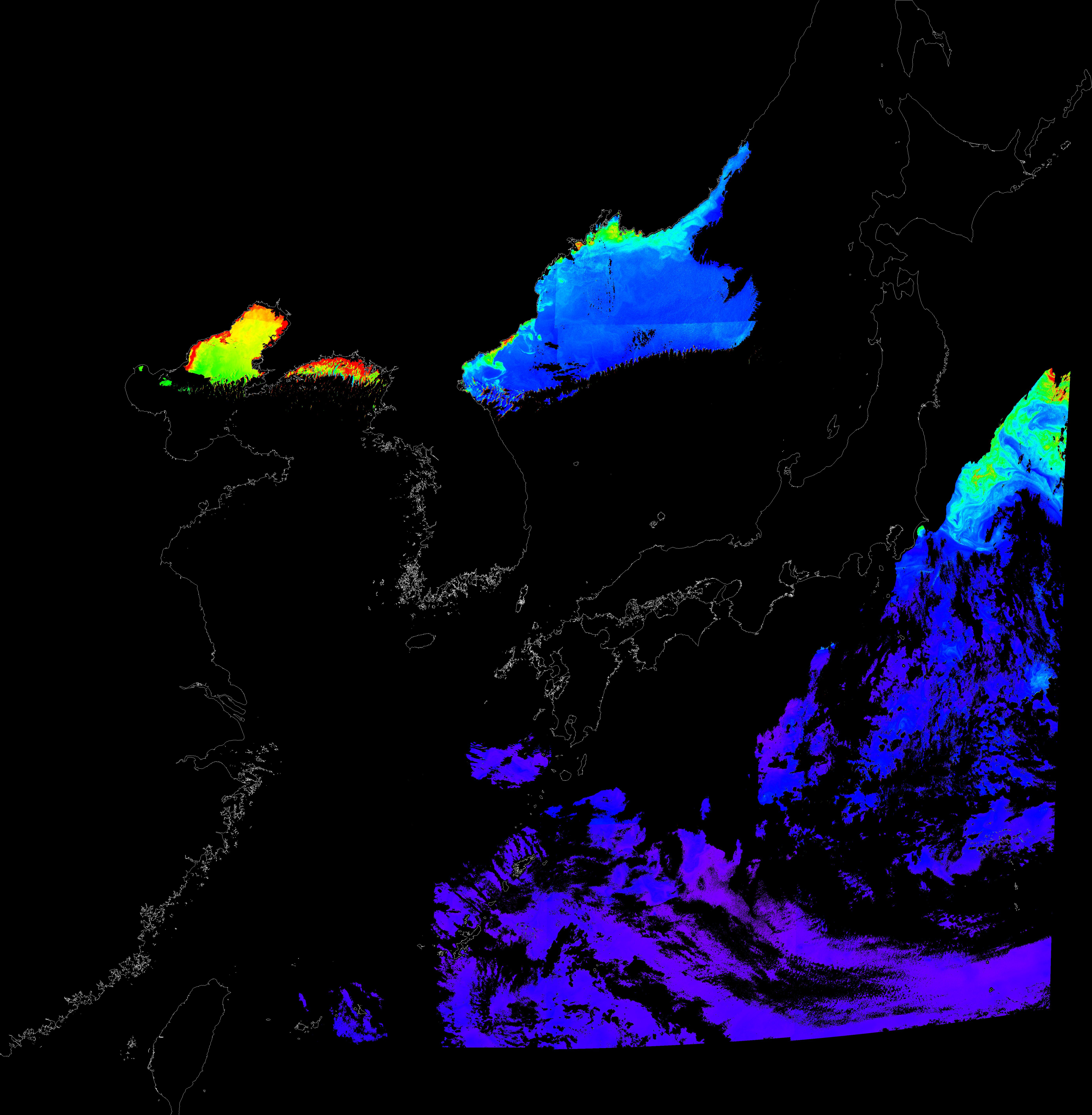 o 2016년 3월 8일 천리안 GOCI 클로로필 a 위성영상입니다.