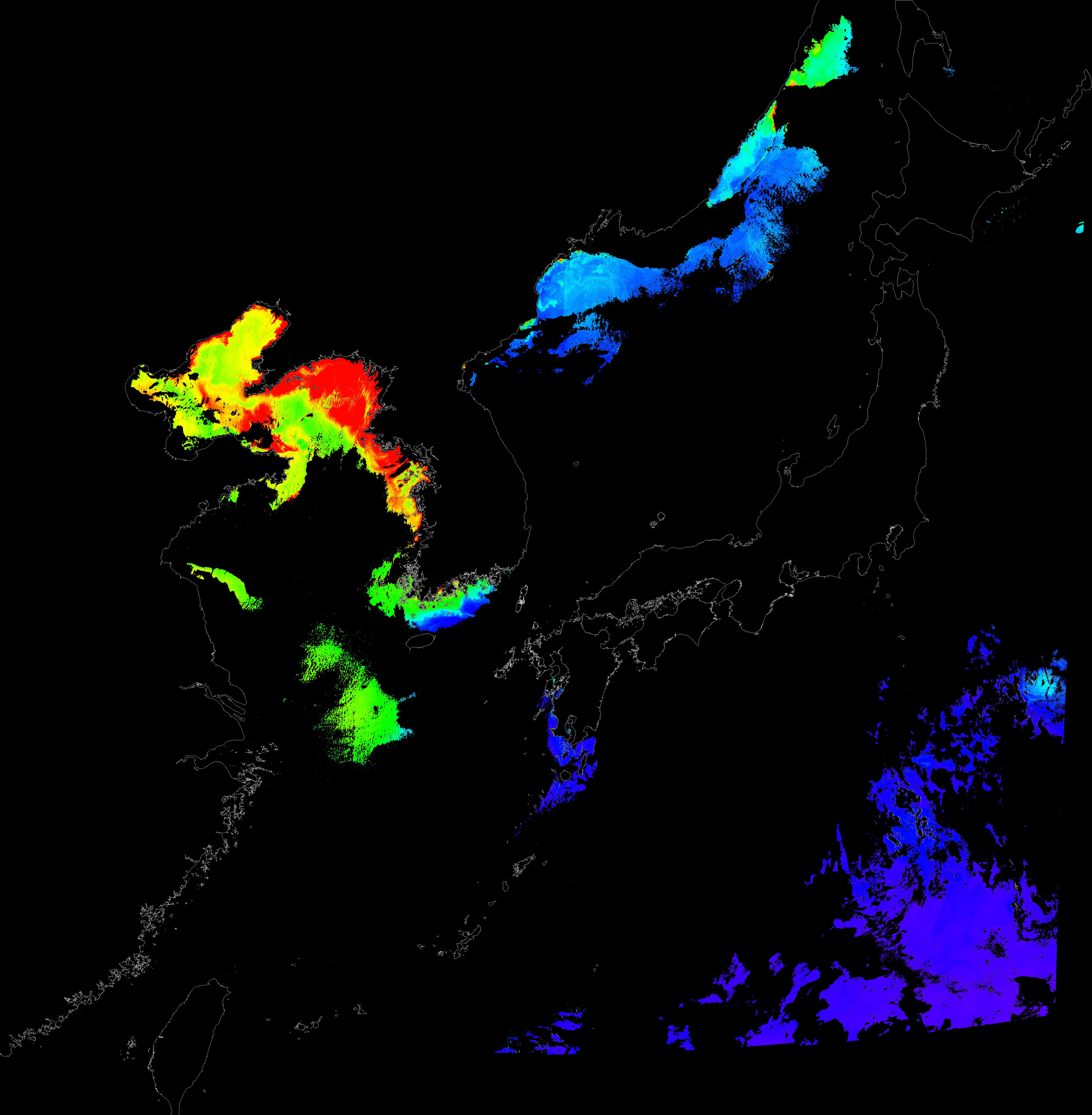 o 2016년 3월 9일 천리안 GOCI 클로로필 a 위성영상입니다.
