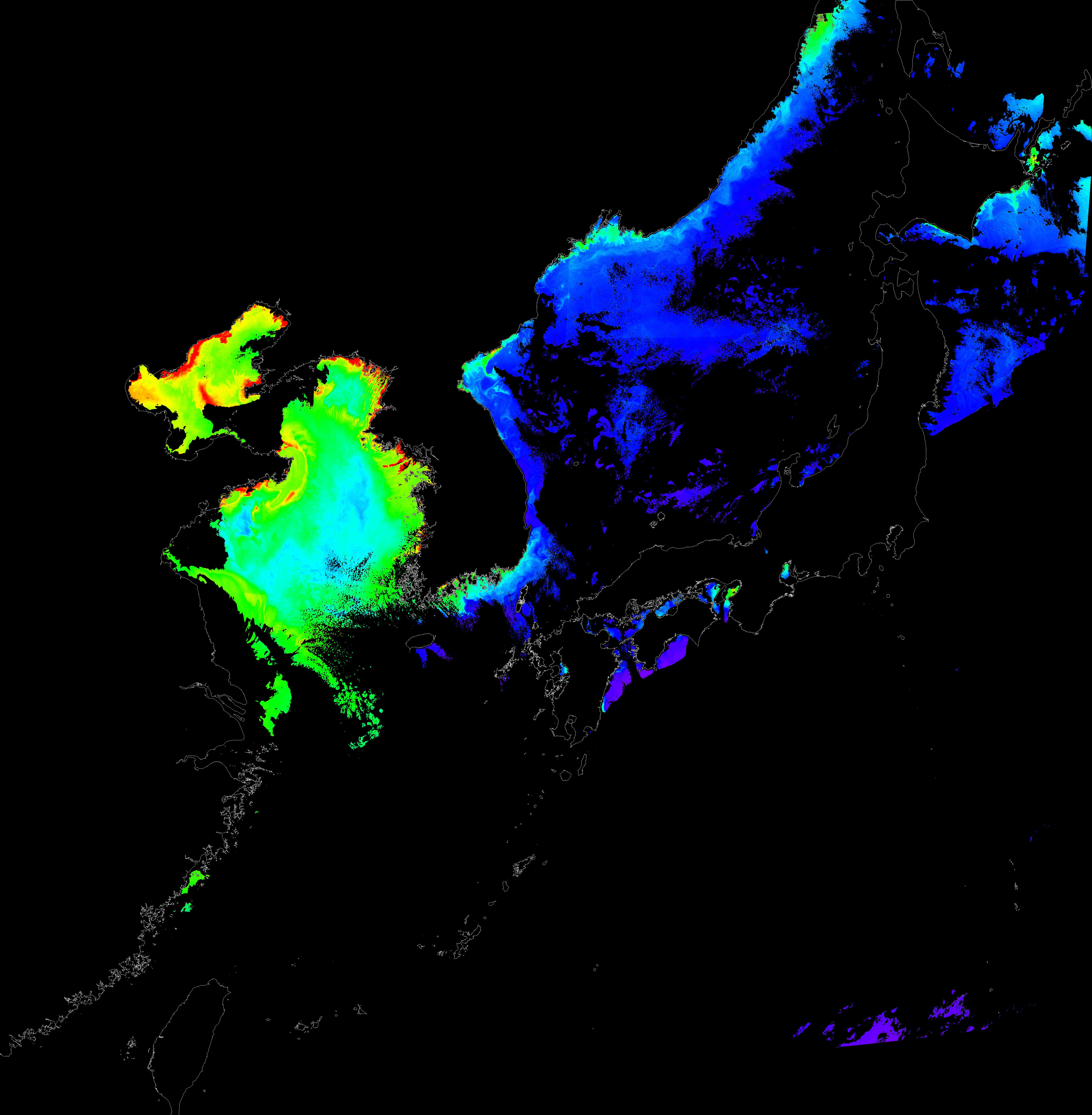 o 2016년 3월 11일 천리안 GOCI 클로로필 a 위성영상입니다.