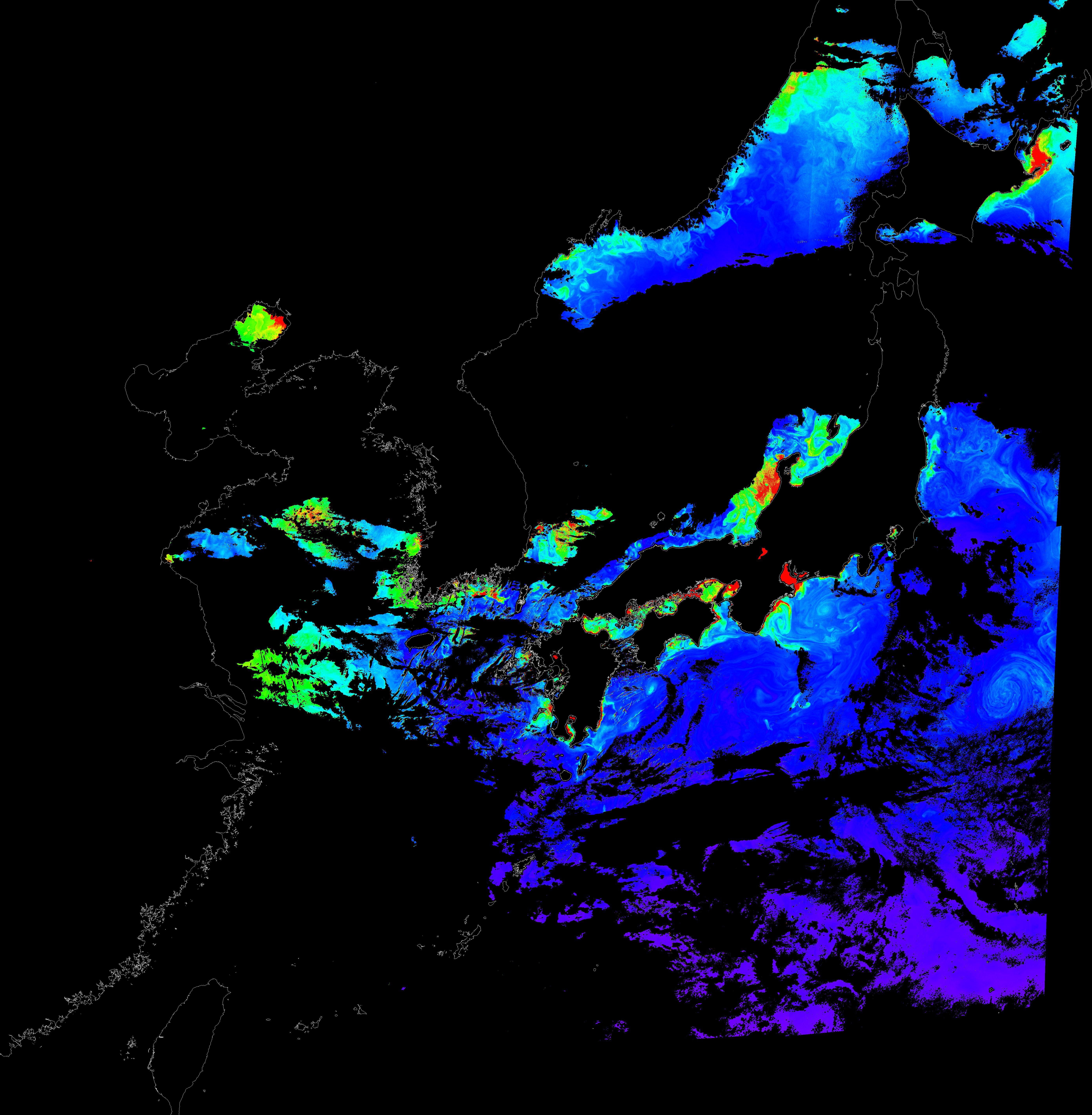o 2016년 3월 22일 천리안 GOCI 클로로필 a 위성영상입니다.