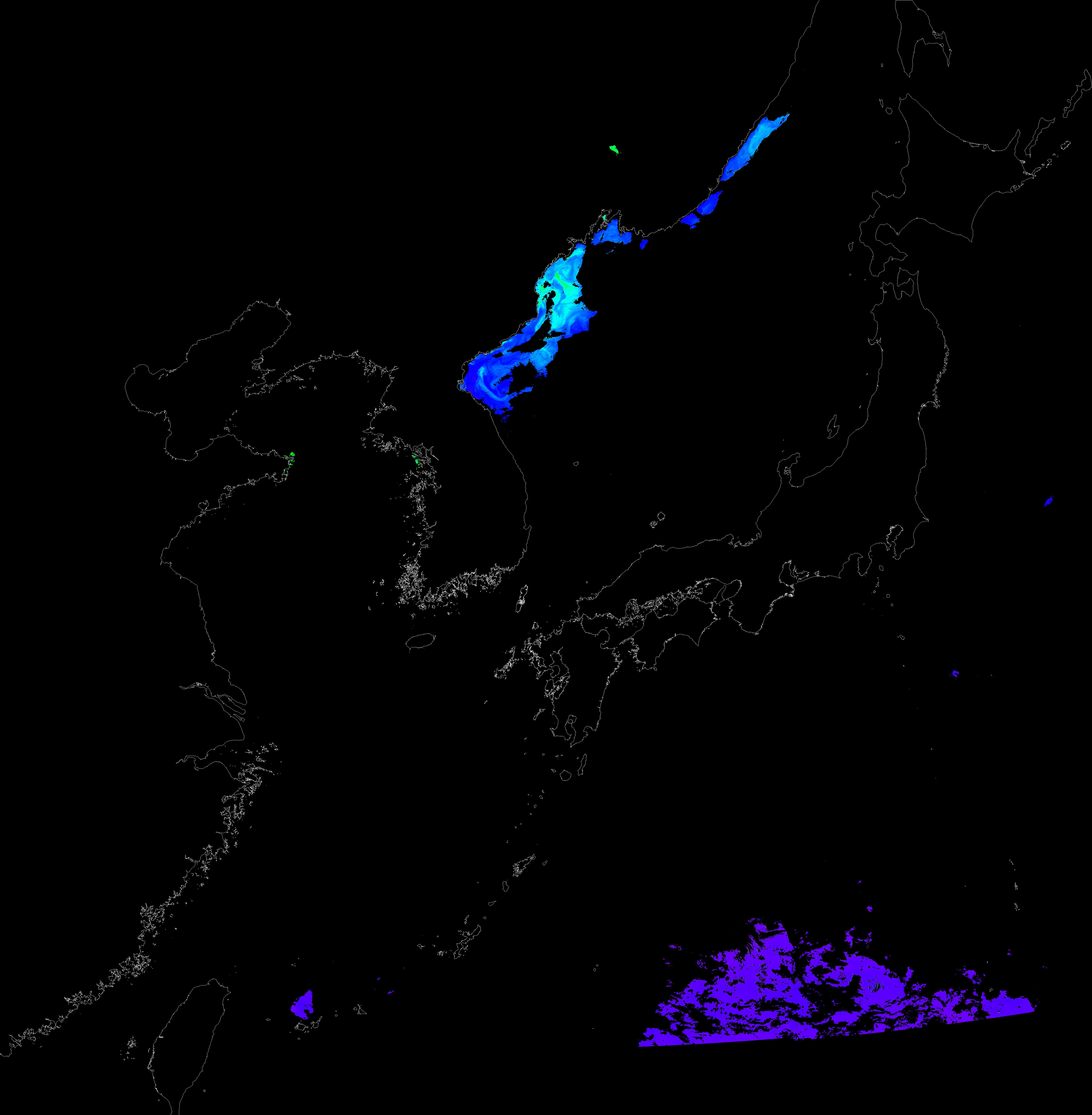 o 2016년 4월 13일 천리안 GOCI 클로로필 a 위성영상입니다.