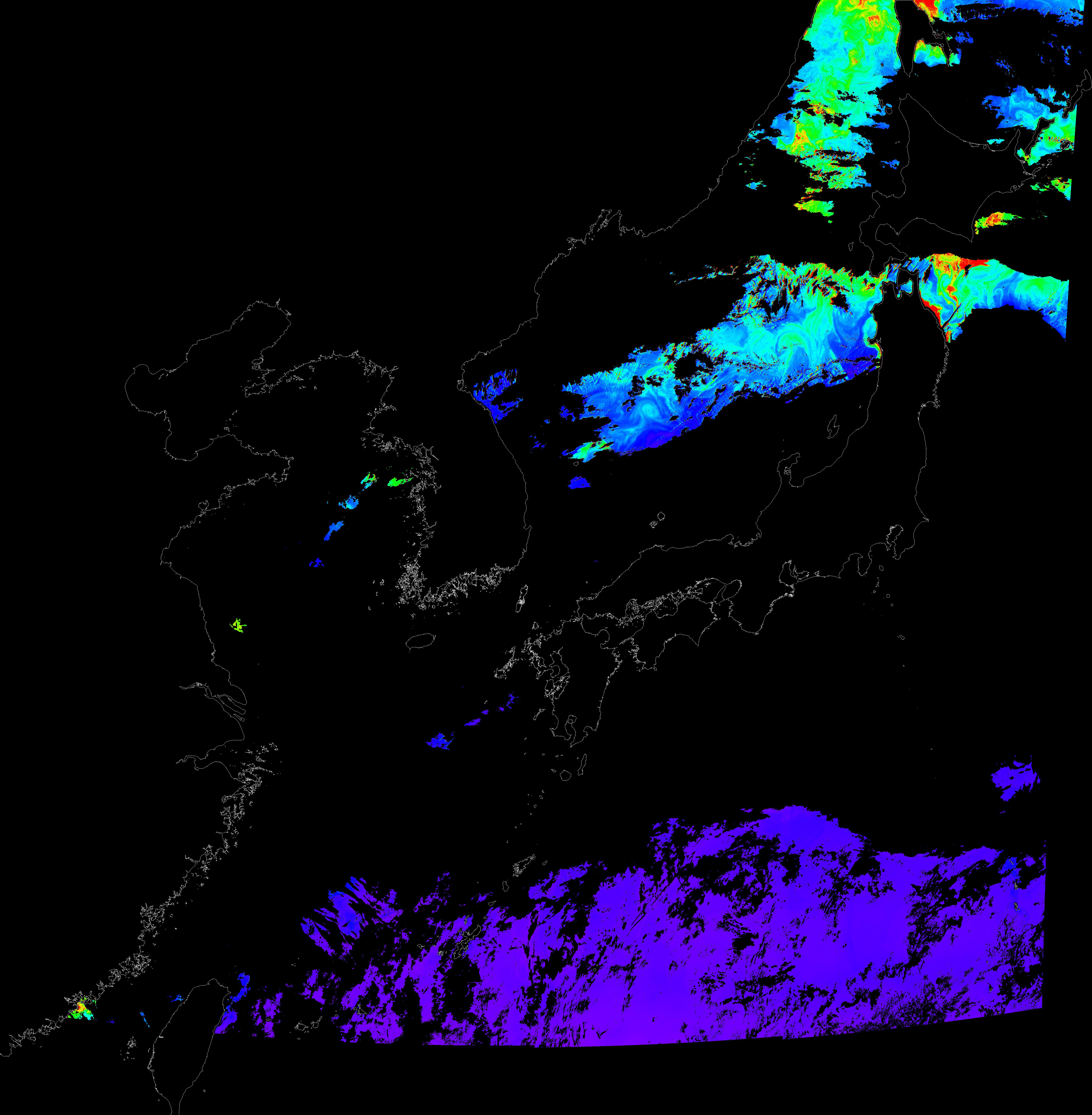 o 2016년 5월 9일 천리안 GOCI 클로로필 a 위성영상입니다.