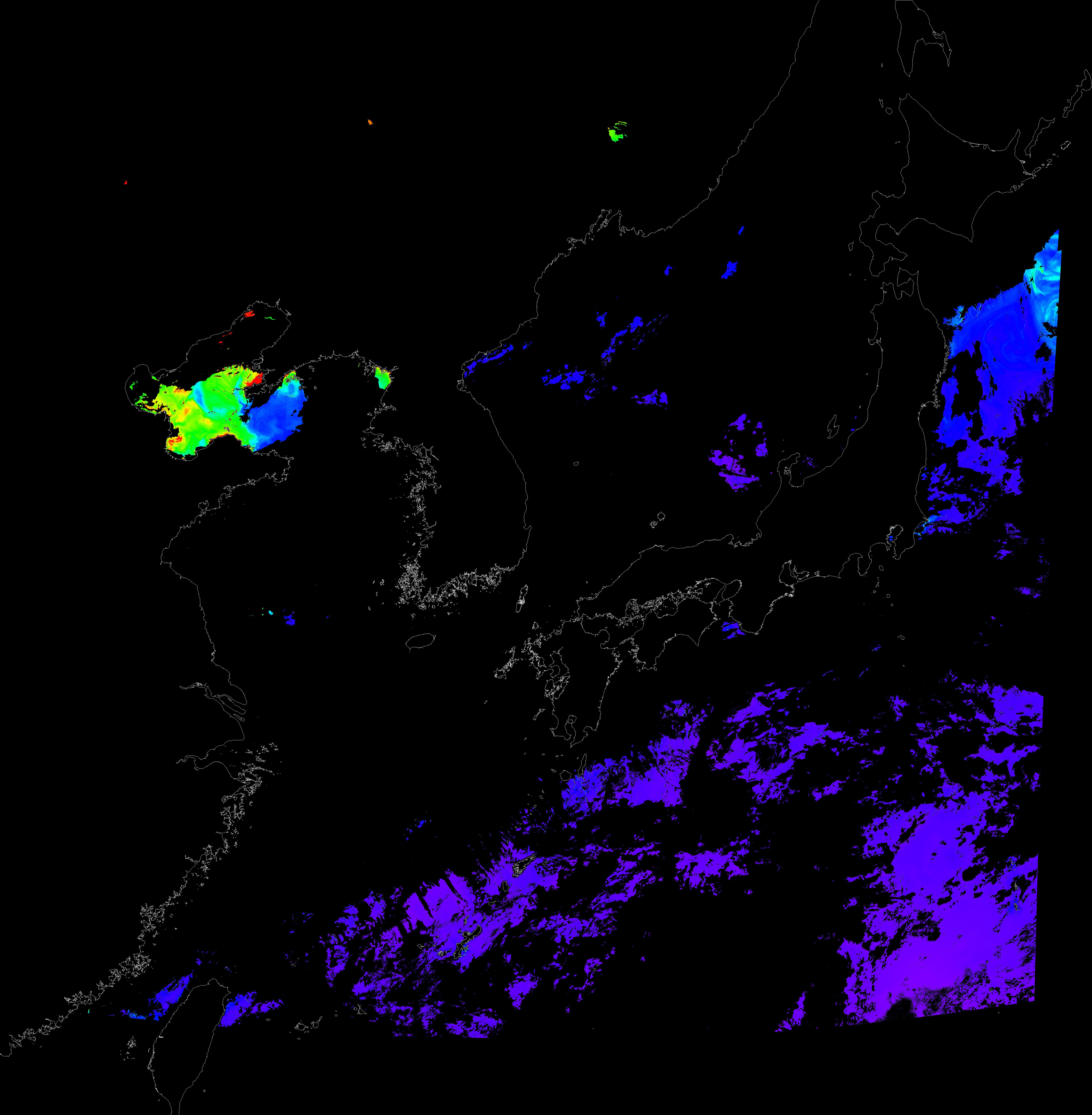 o 2016년 6월 8일 천리안 GOCI 클로로필 a 위성영상입니다.