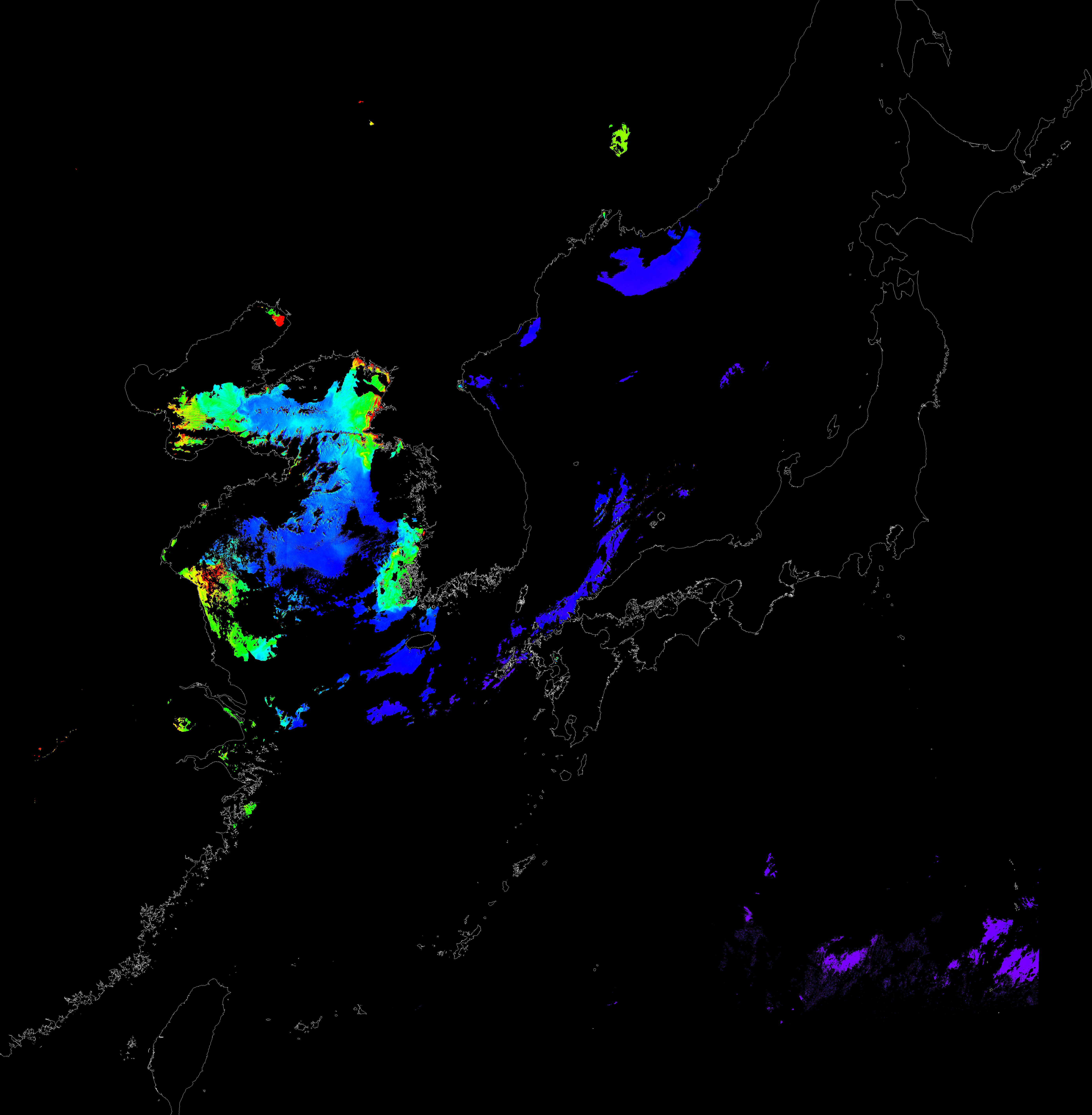 o 2016년 6월 13일 천리안 GOCI 클로로필 a 위성영상입니다.