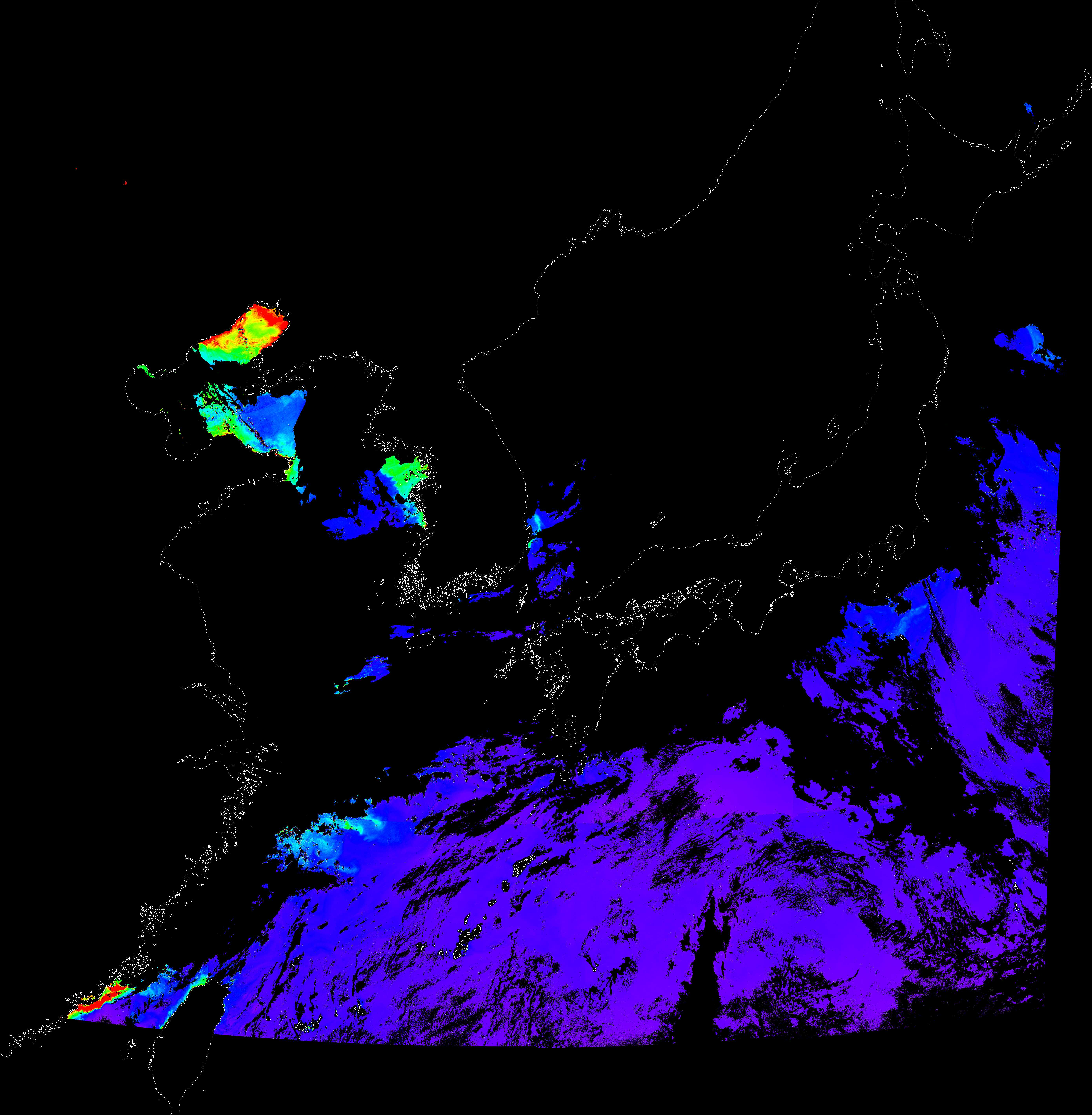 o 2016년 6월 19일 천리안 GOCI 클로로필 a 위성영상입니다.