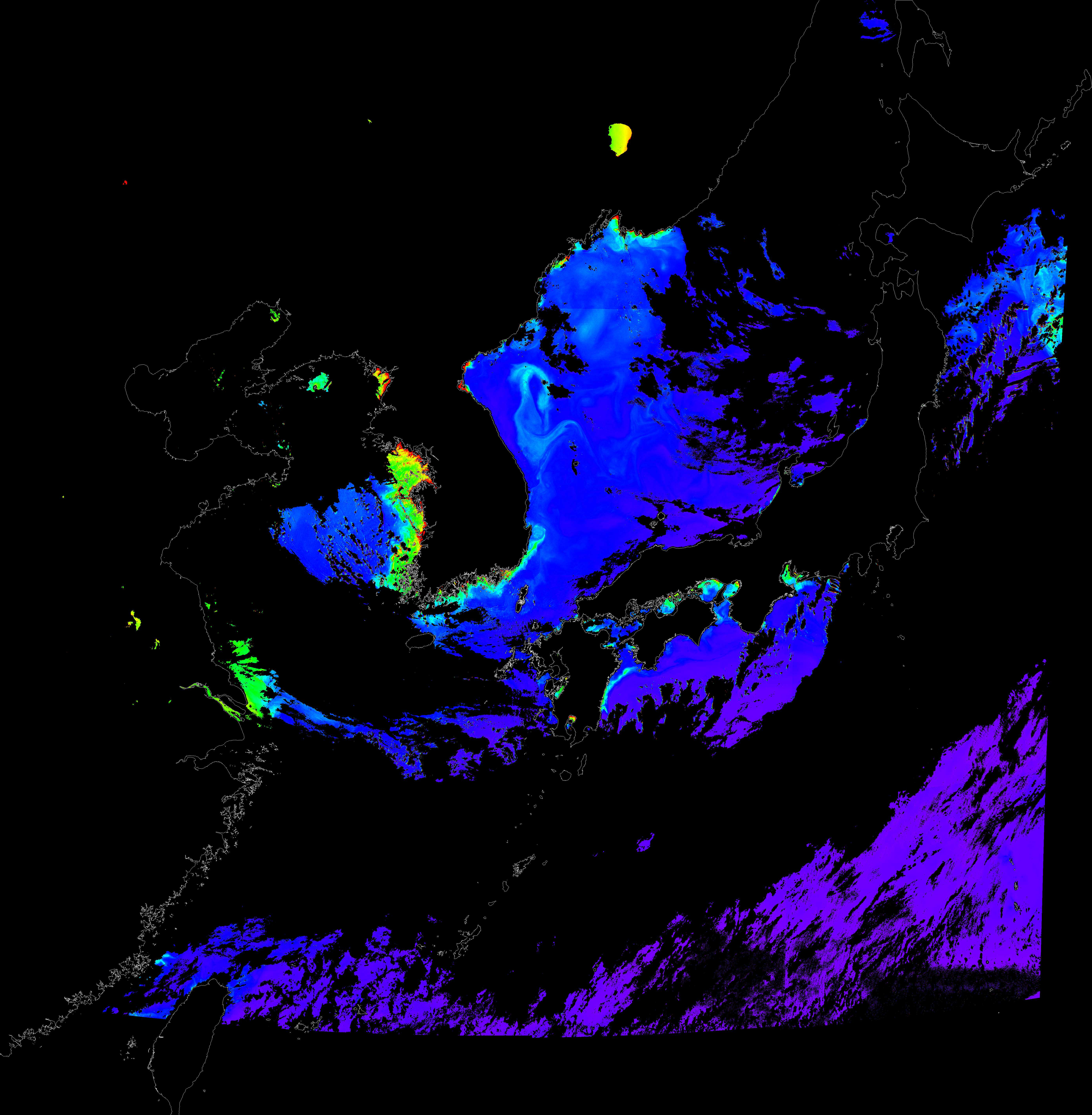 o 2016년 6월 26일 천리안 GOCI 클로로필 a 위성영상입니다.