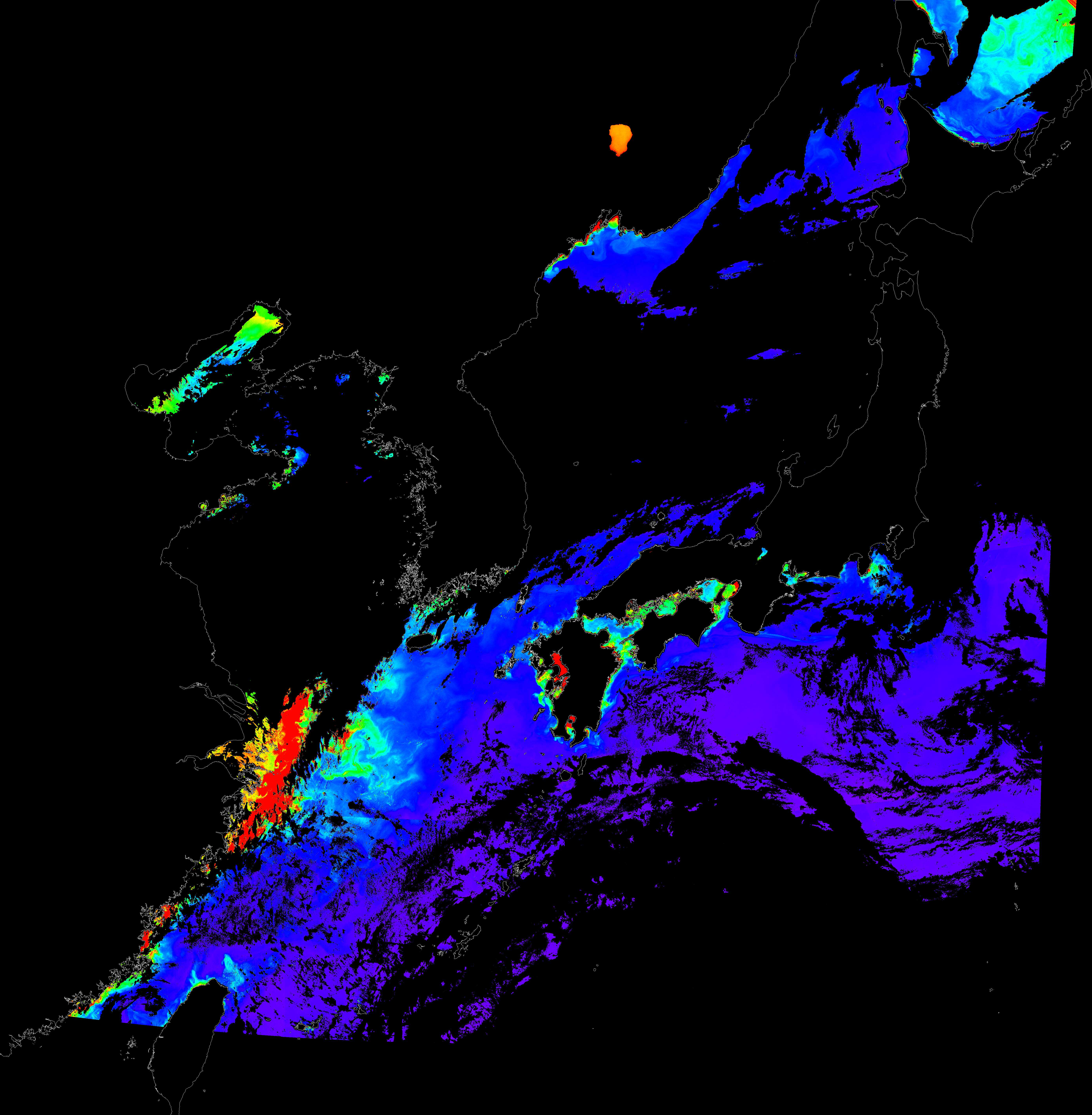 o 2016년 7월 6일 천리안 GOCI 클로로필 a 위성영상입니다.
