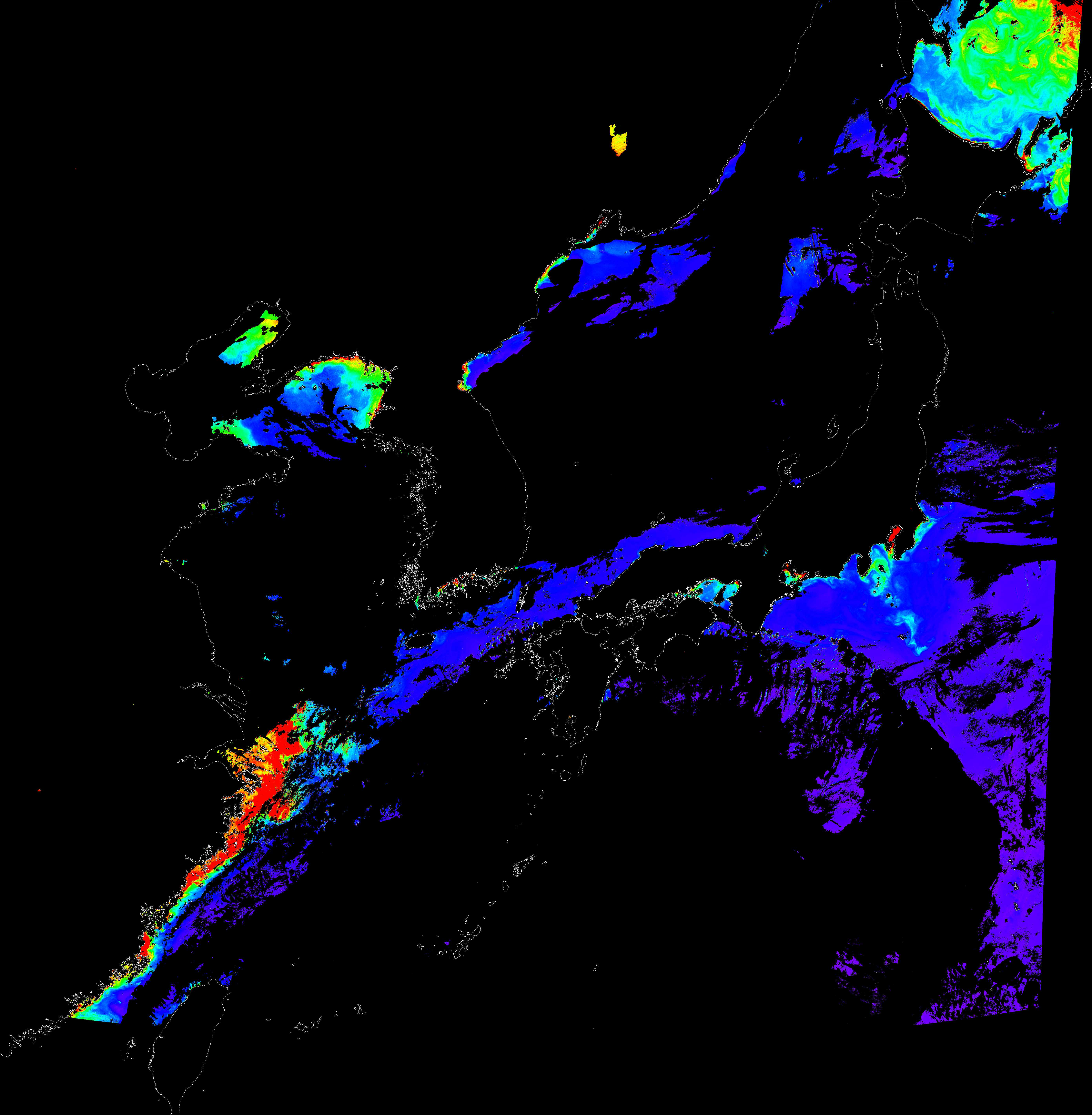 o 2016년 7월 7일 천리안 GOCI 클로로필 a 위성영상입니다.