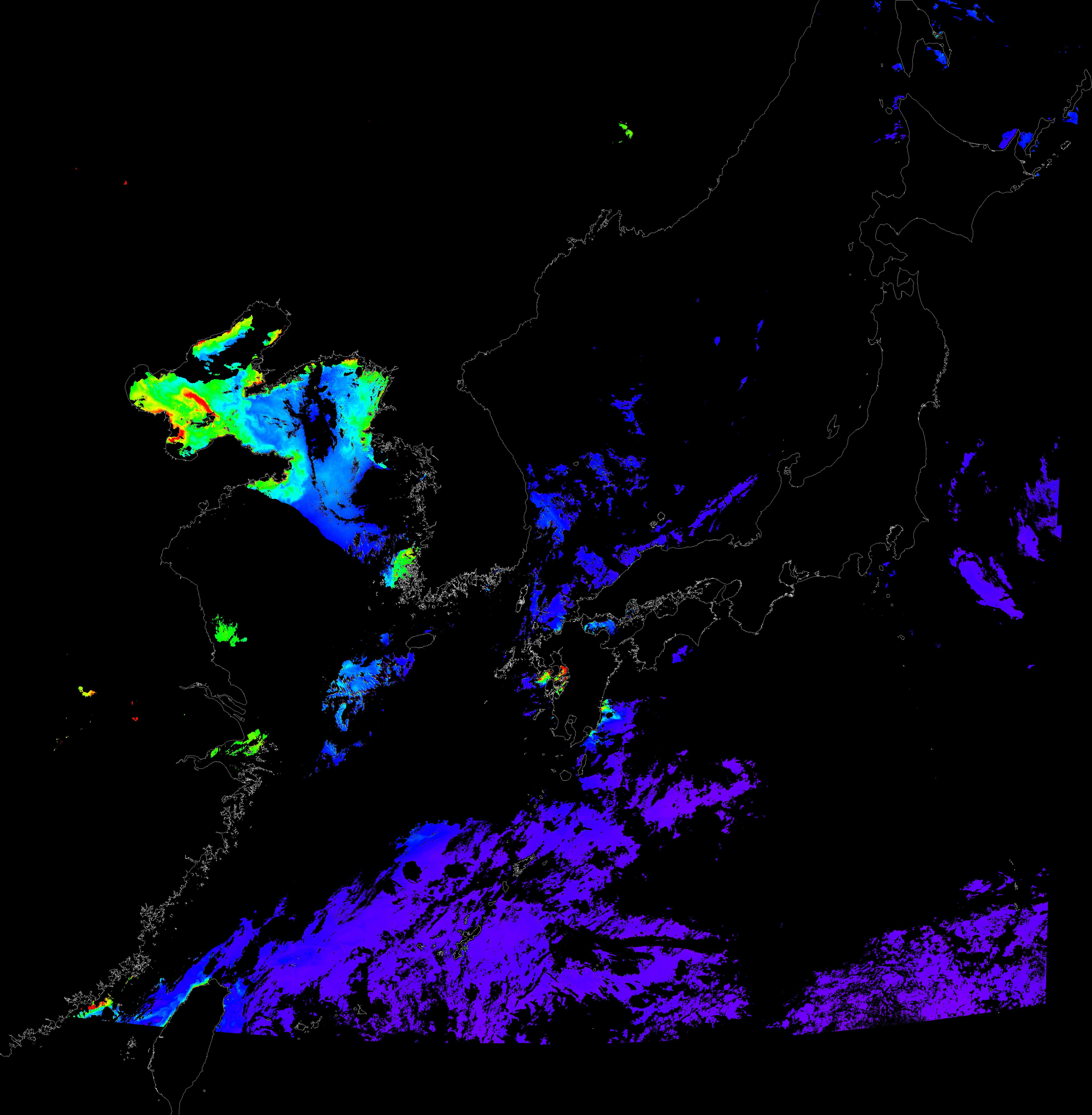 o 2016년 7월 17일 천리안 GOCI 클로로필 a 위성영상입니다.