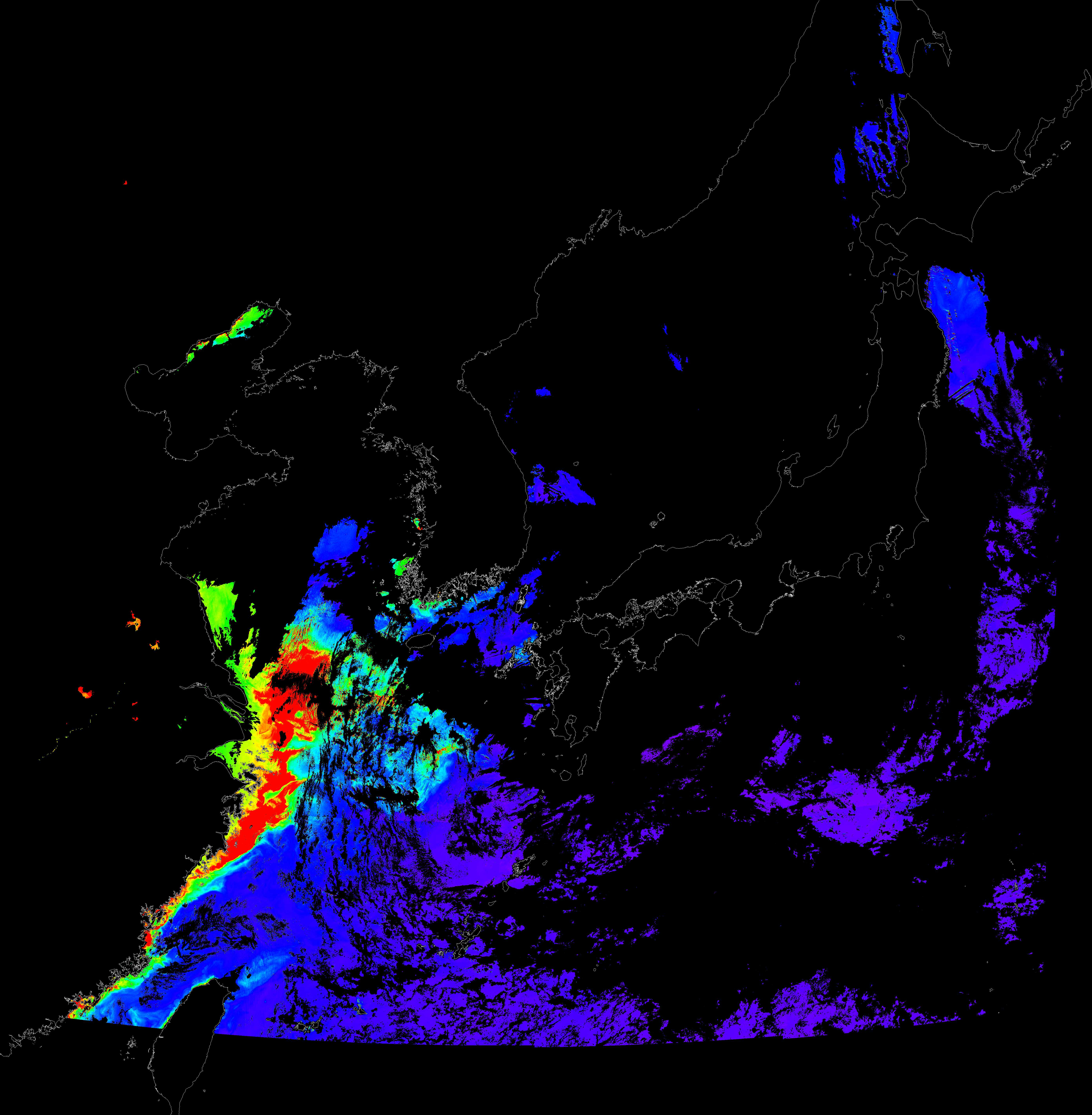 o 2016년 7월 26일 천리안 GOCI 클로로필 a 위성영상입니다.