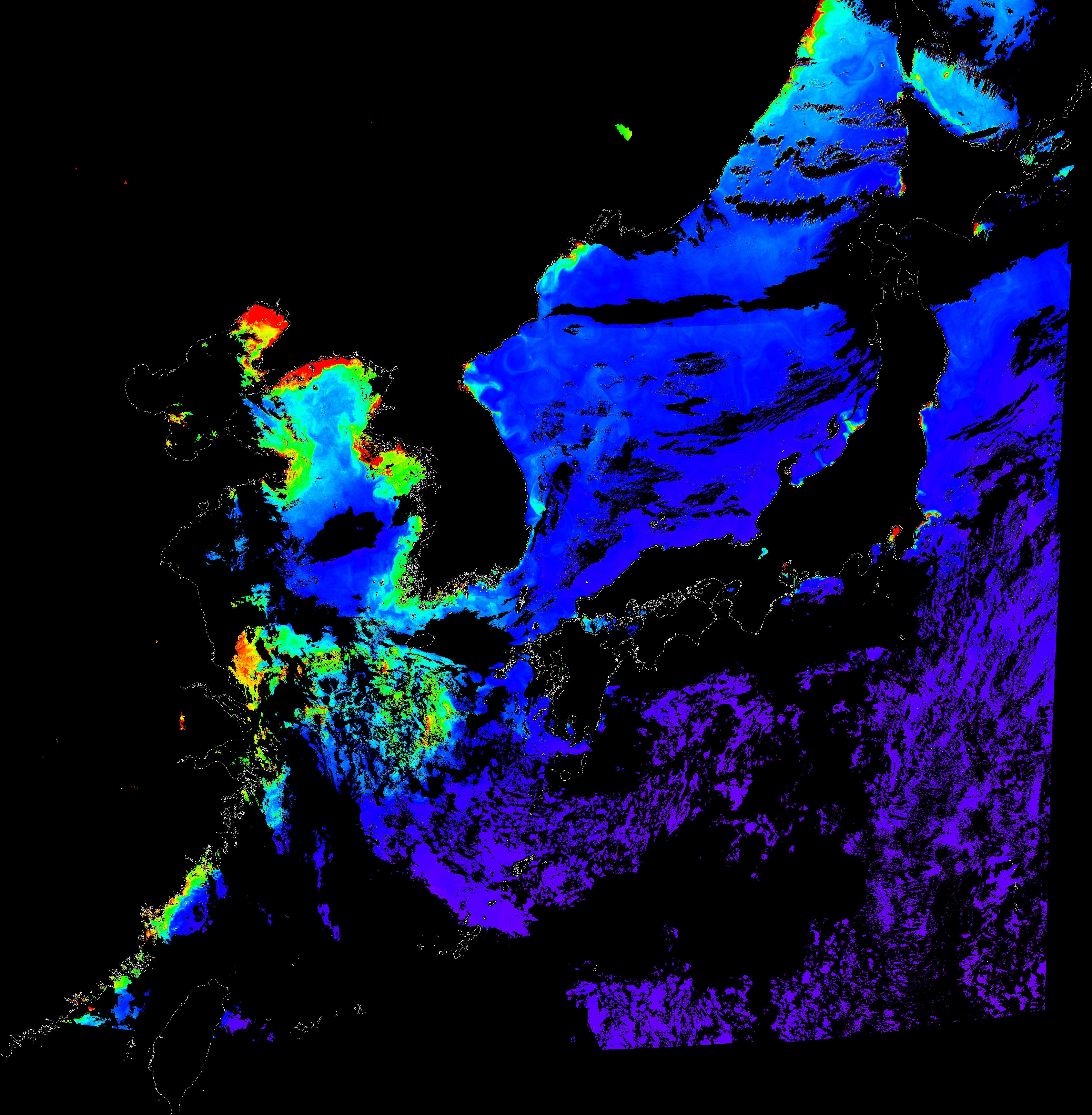 o 2016년 8월 5일 천리안 GOCI 클로로필 a 위성영상입니다.