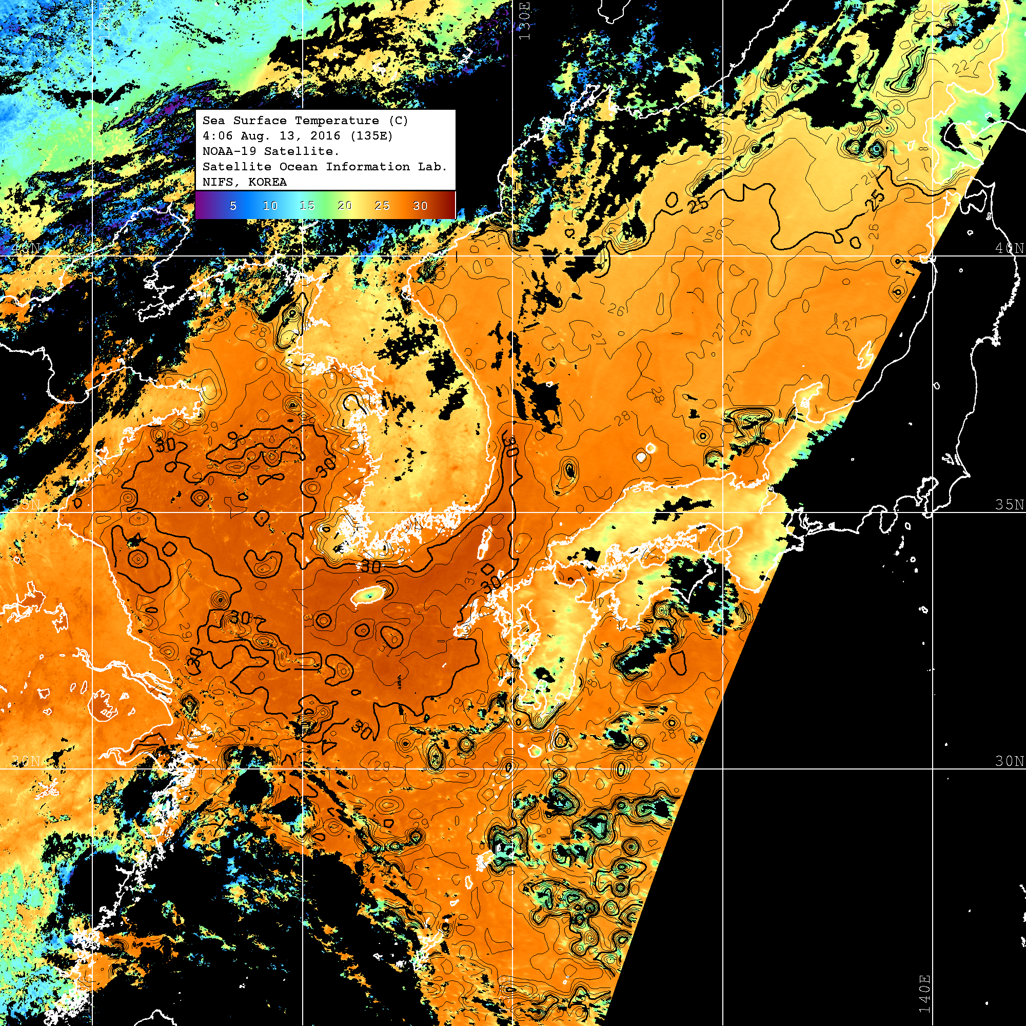 o 2016 년 08 월 13 일 NOAA 위성영상입니다.