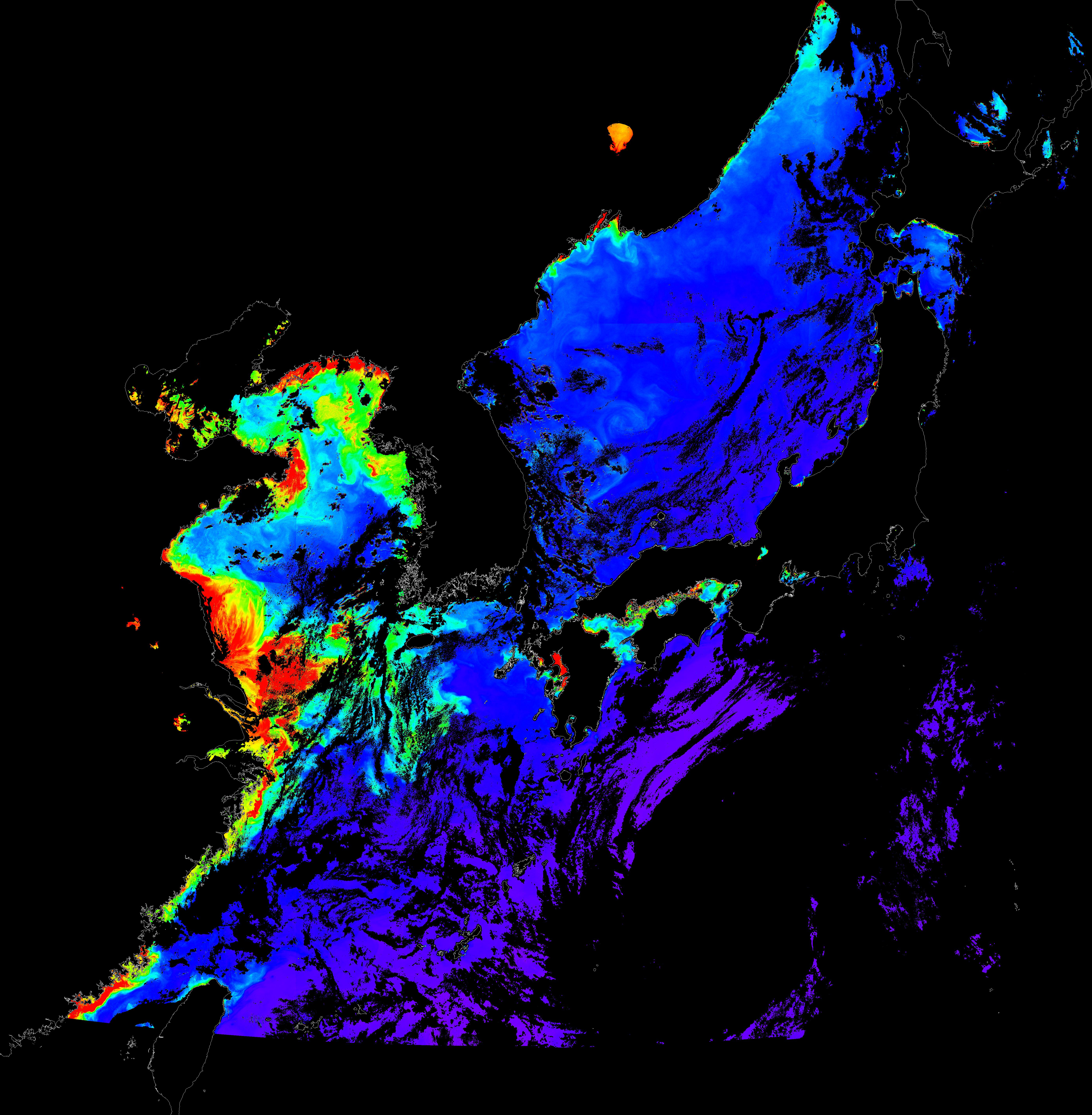 o 2016년 8월 23일 천리안 GOCI 클로로필 a 위성영상입니다.