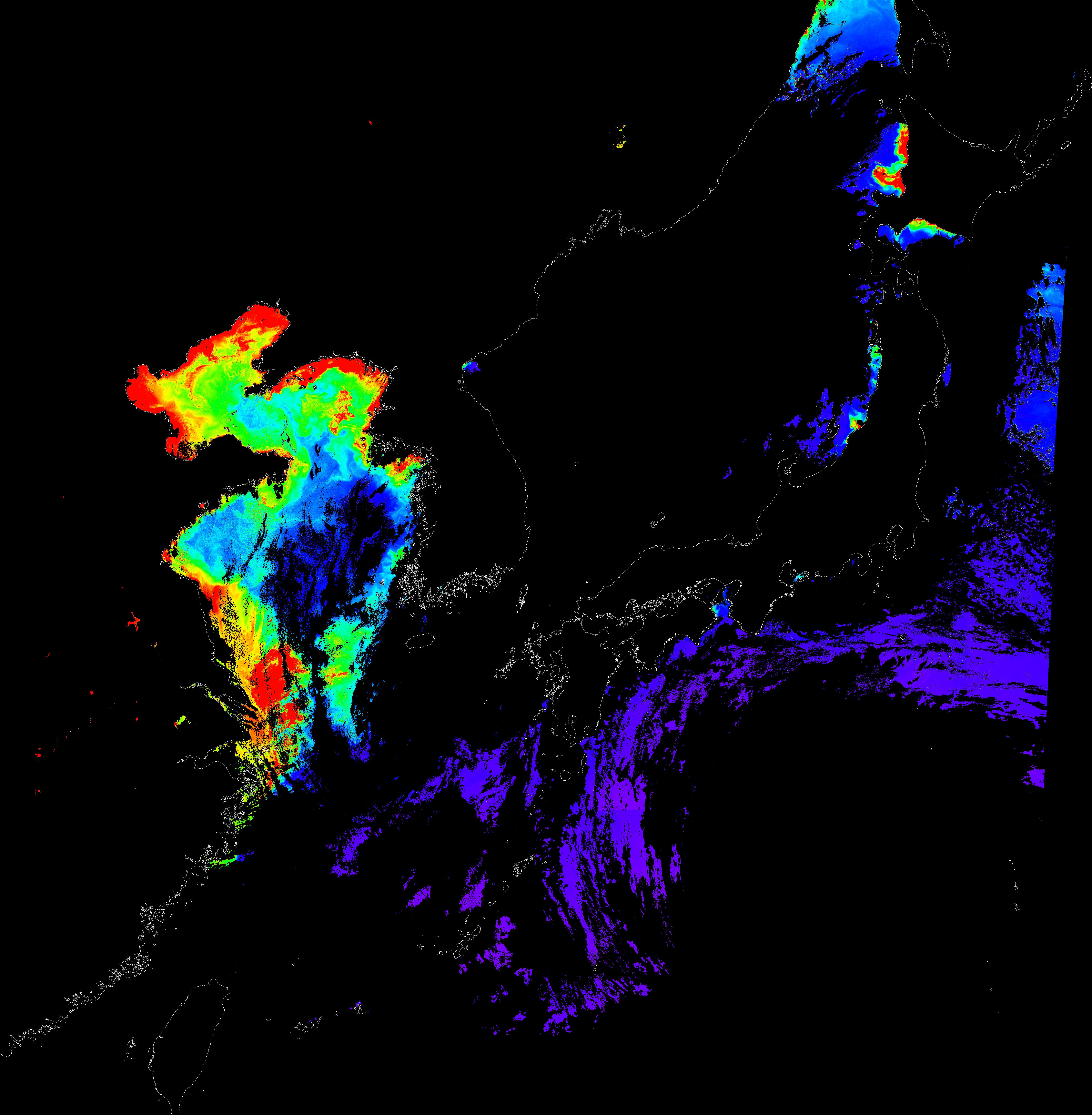o 2016년 8월 28일 천리안 GOCI 클로로필 a 위성영상입니다.