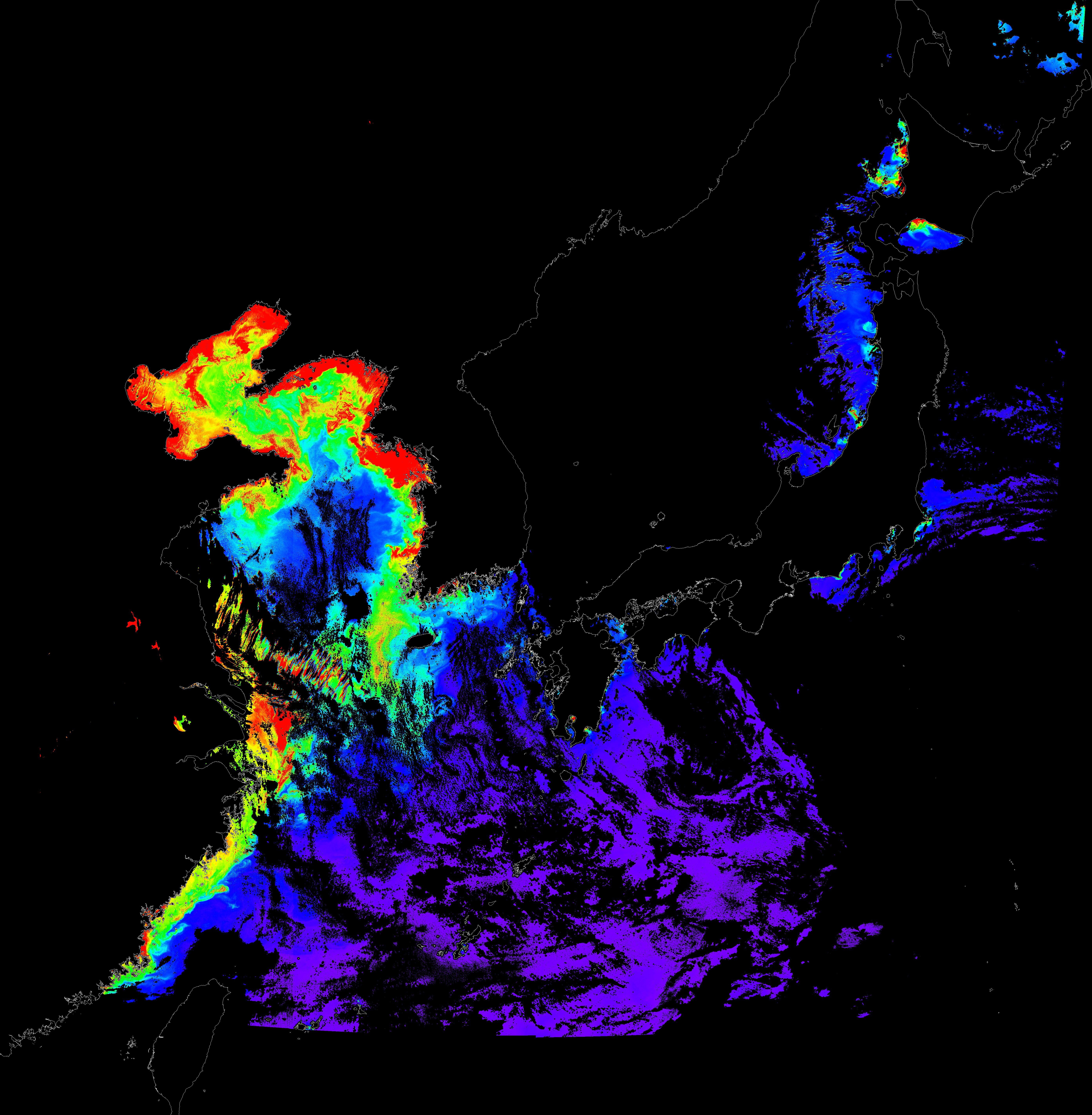 o 2016년 8월 29일 천리안 GOCI 클로로필 a 위성영상입니다.