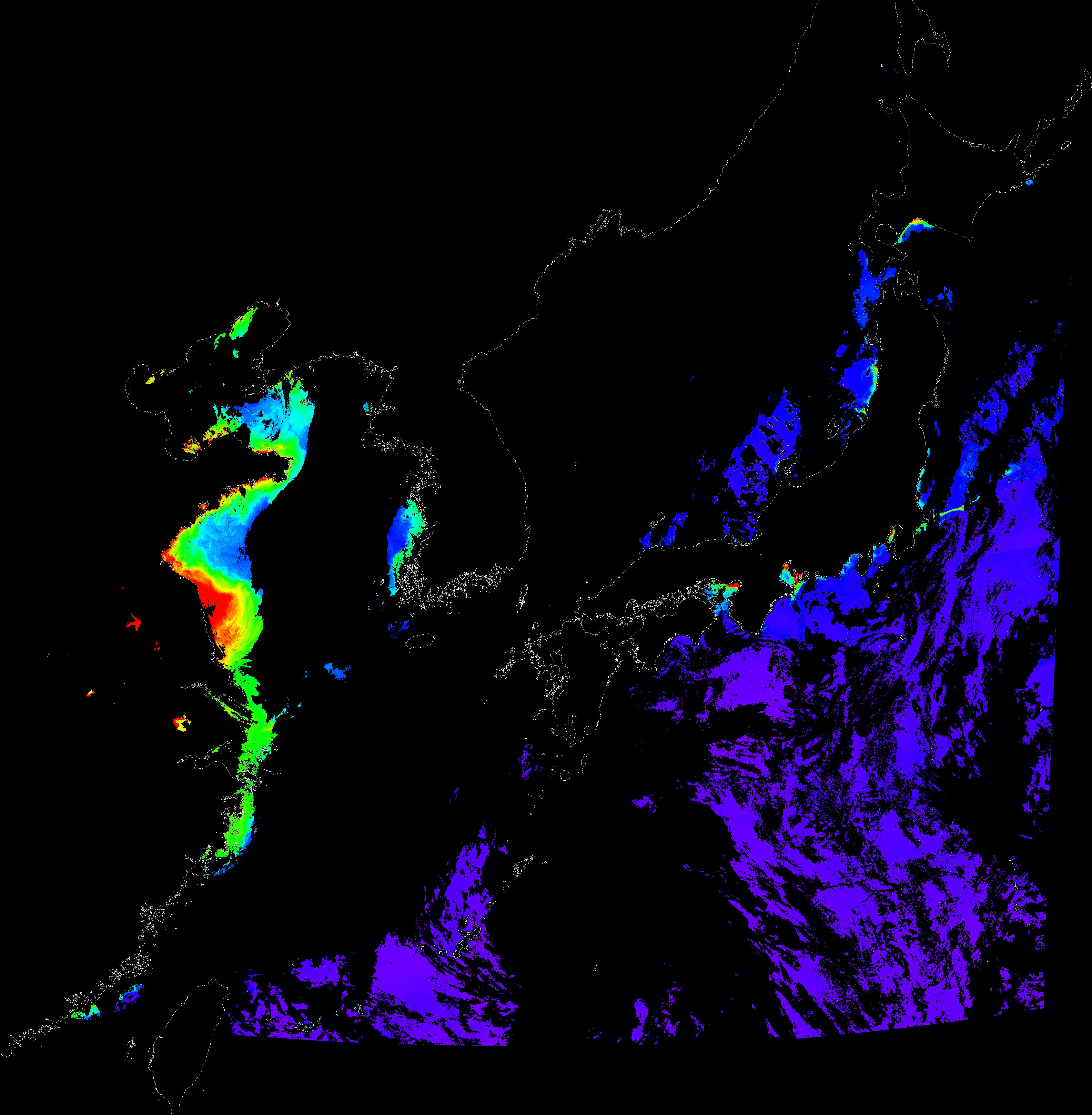 o 2016년 9월 2일 천리안 GOCI 클로로필 a 위성영상입니다.