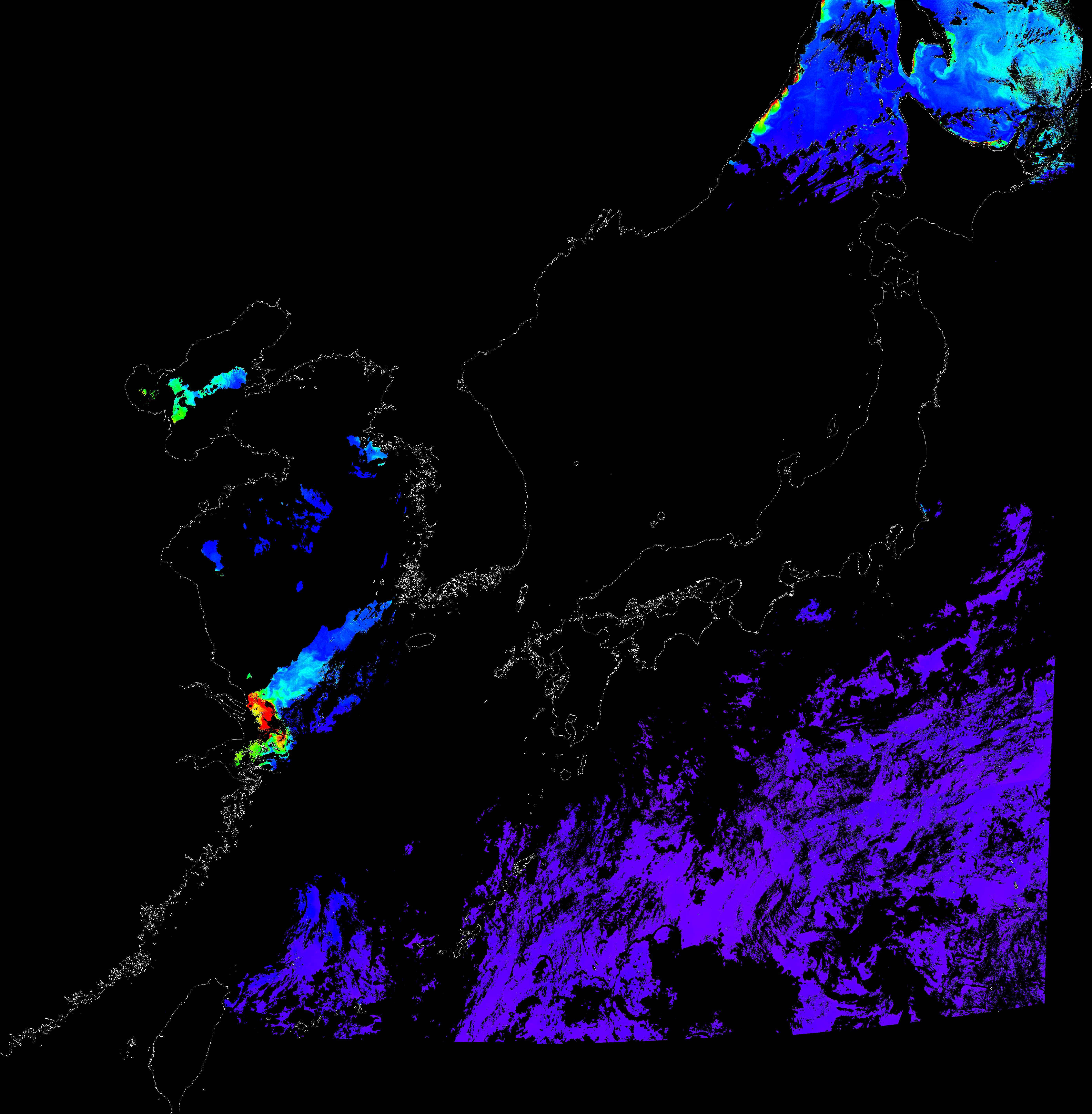 o 2016년 9월 12일 천리안 GOCI 클로로필 a 위성영상입니다.