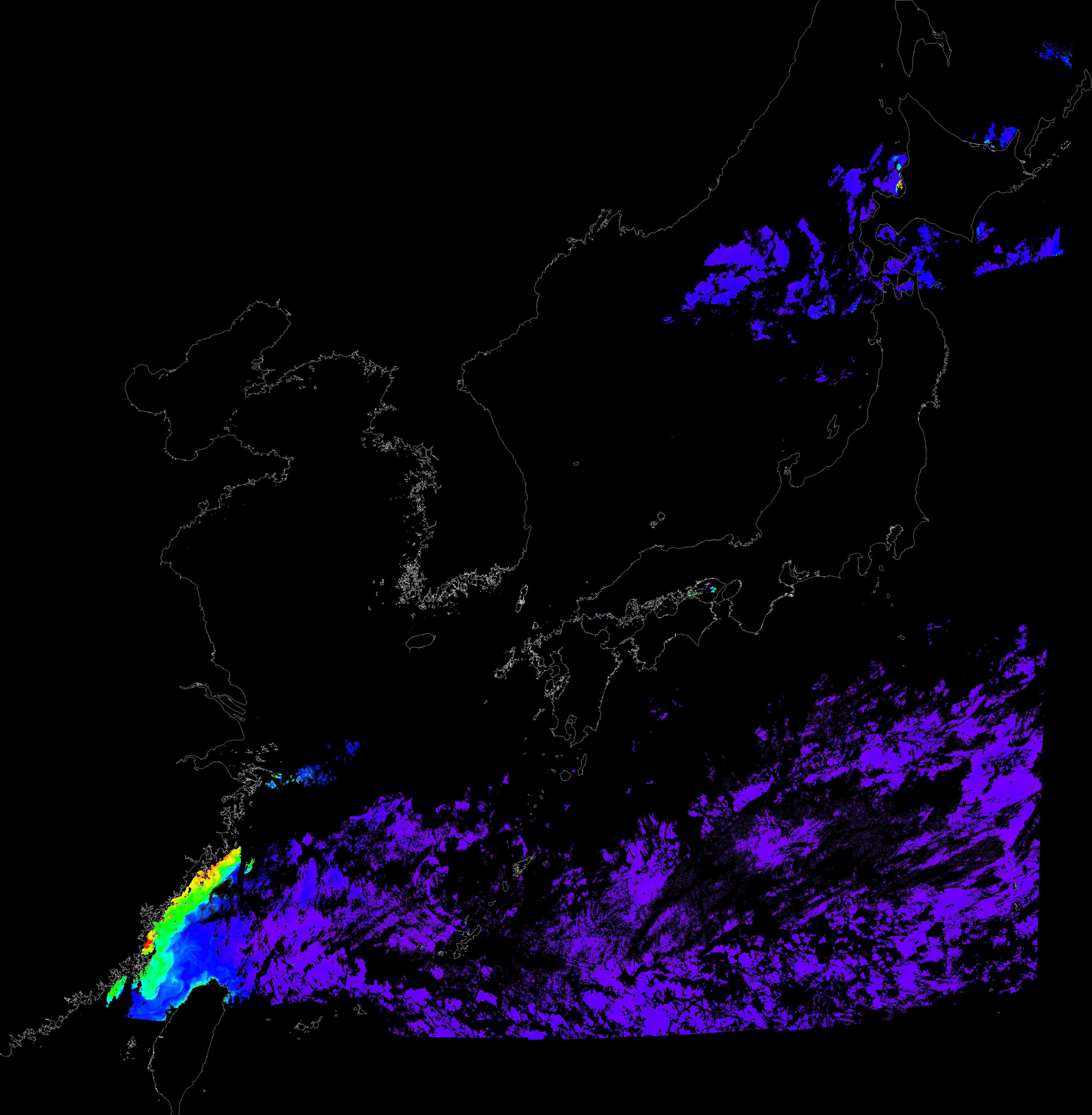 o 2016년 9월 16일 천리안 GOCI 클로로필 a 위성영상입니다.