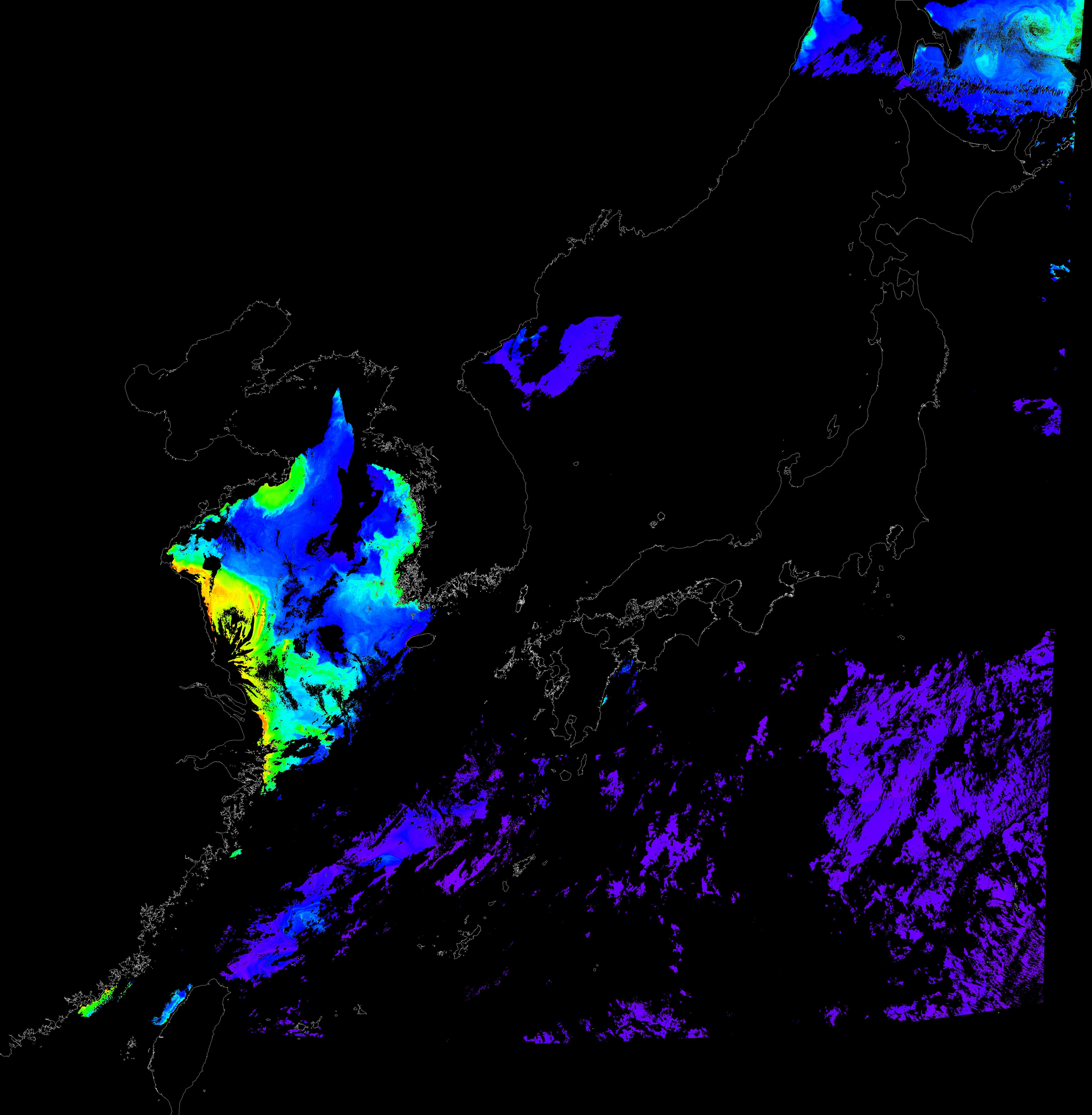 o 2016년 9월 22일 천리안 GOCI 클로로필 a 위성영상입니다.