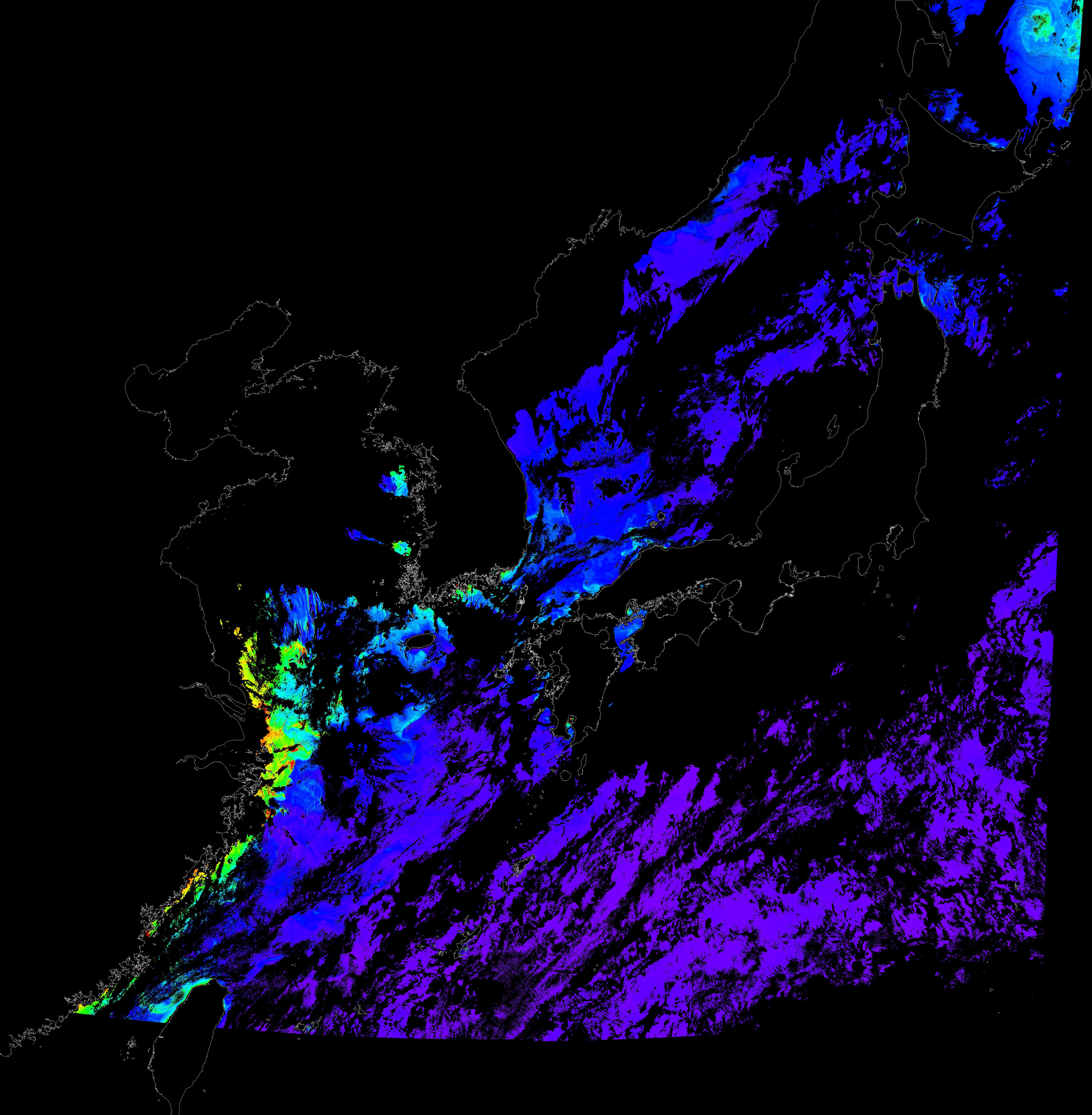 o 2016년 9월 24일 천리안 GOCI 클로로필 a 위성영상입니다.