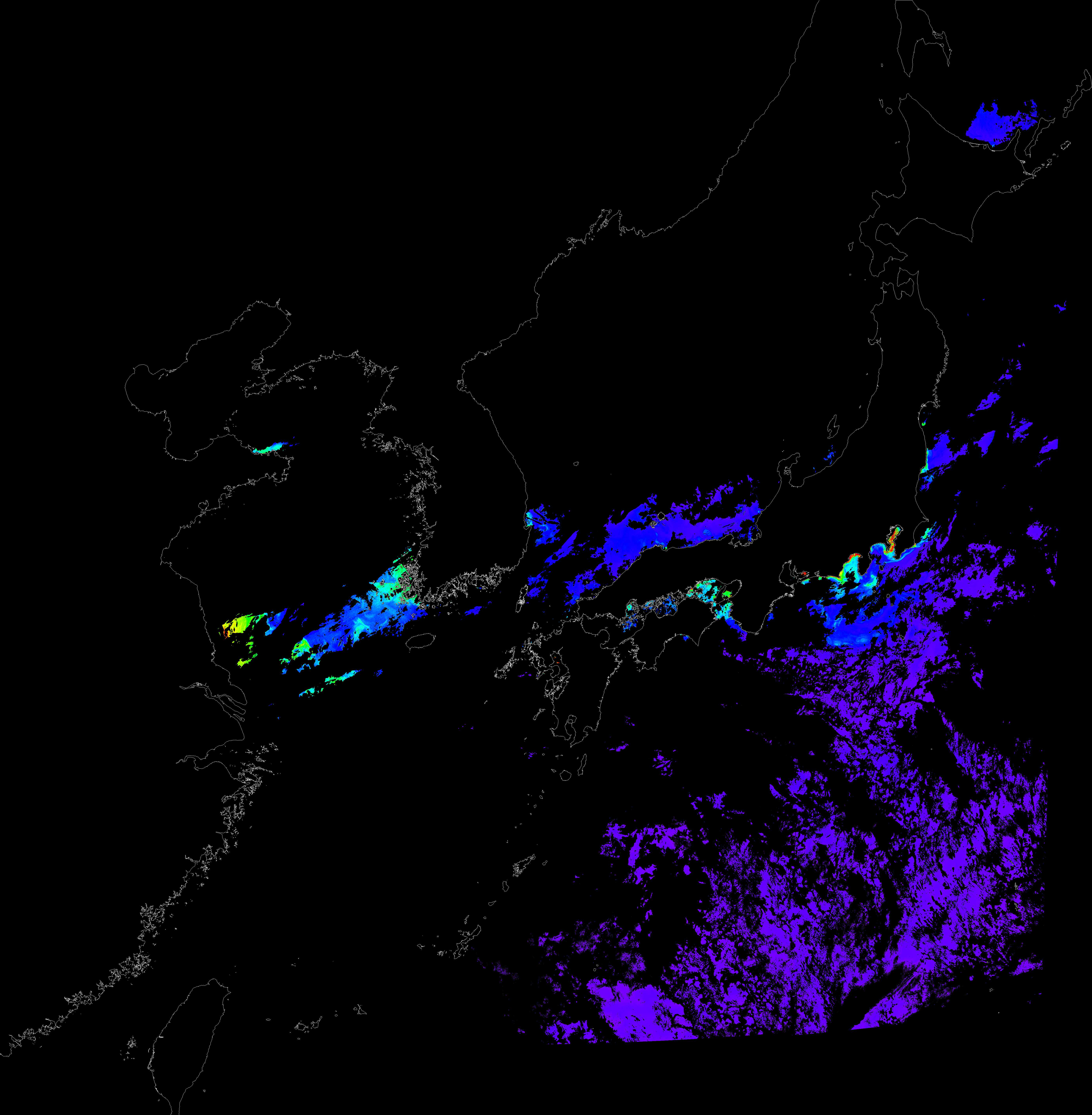 o 2016년 9월 27일 천리안 GOCI 클로로필 a 위성영상입니다.