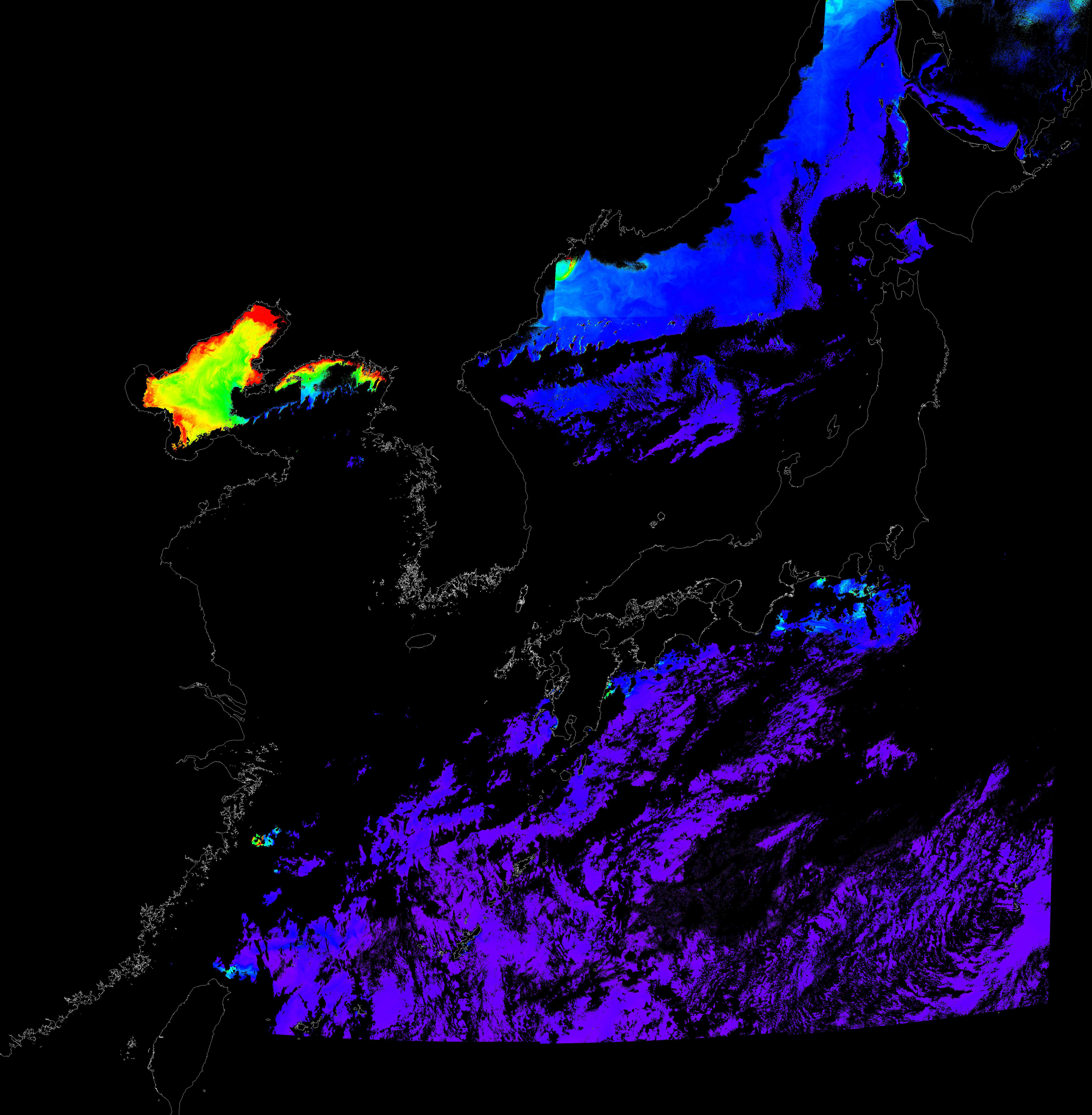 o 2016년 9월 29일 천리안 GOCI 클로로필 a 위성영상입니다.