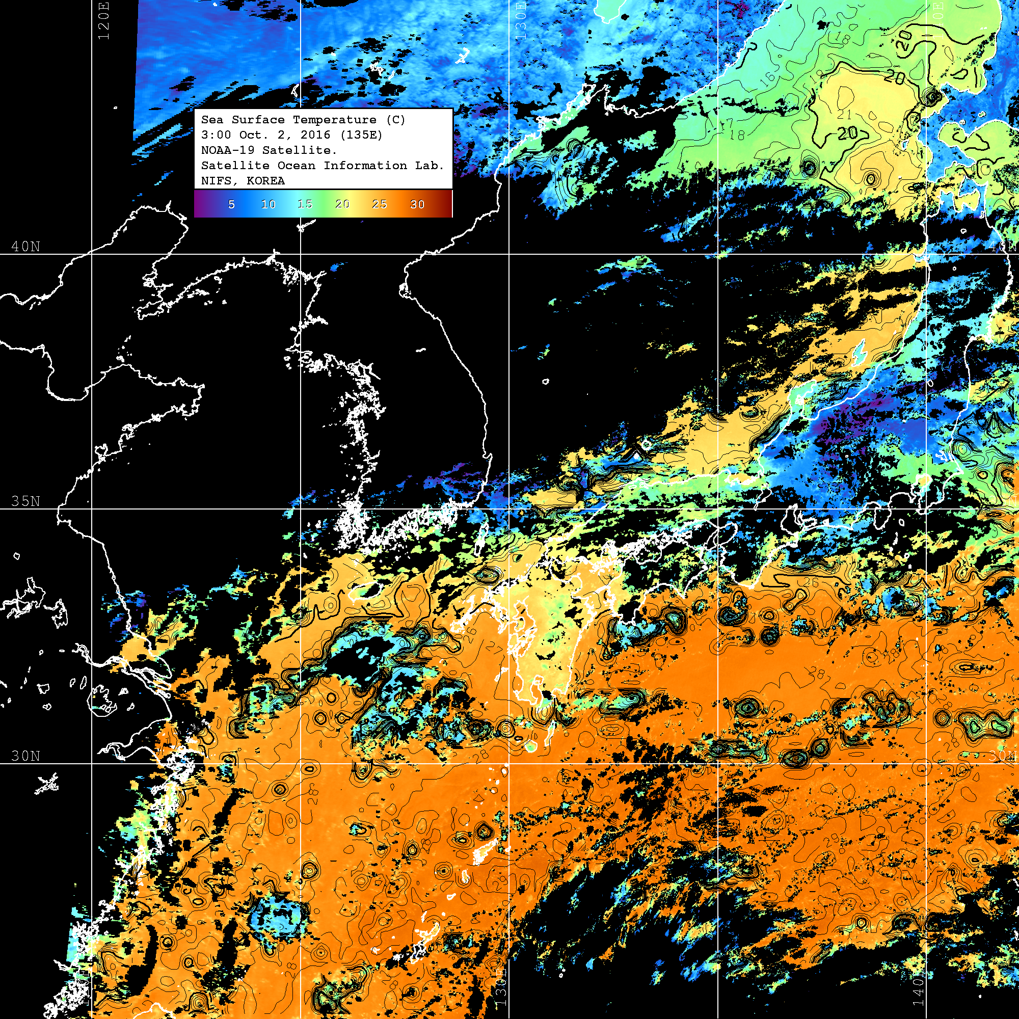 o 영상 시간 및 수온분포는 범례를 참고하시기 바랍니다.