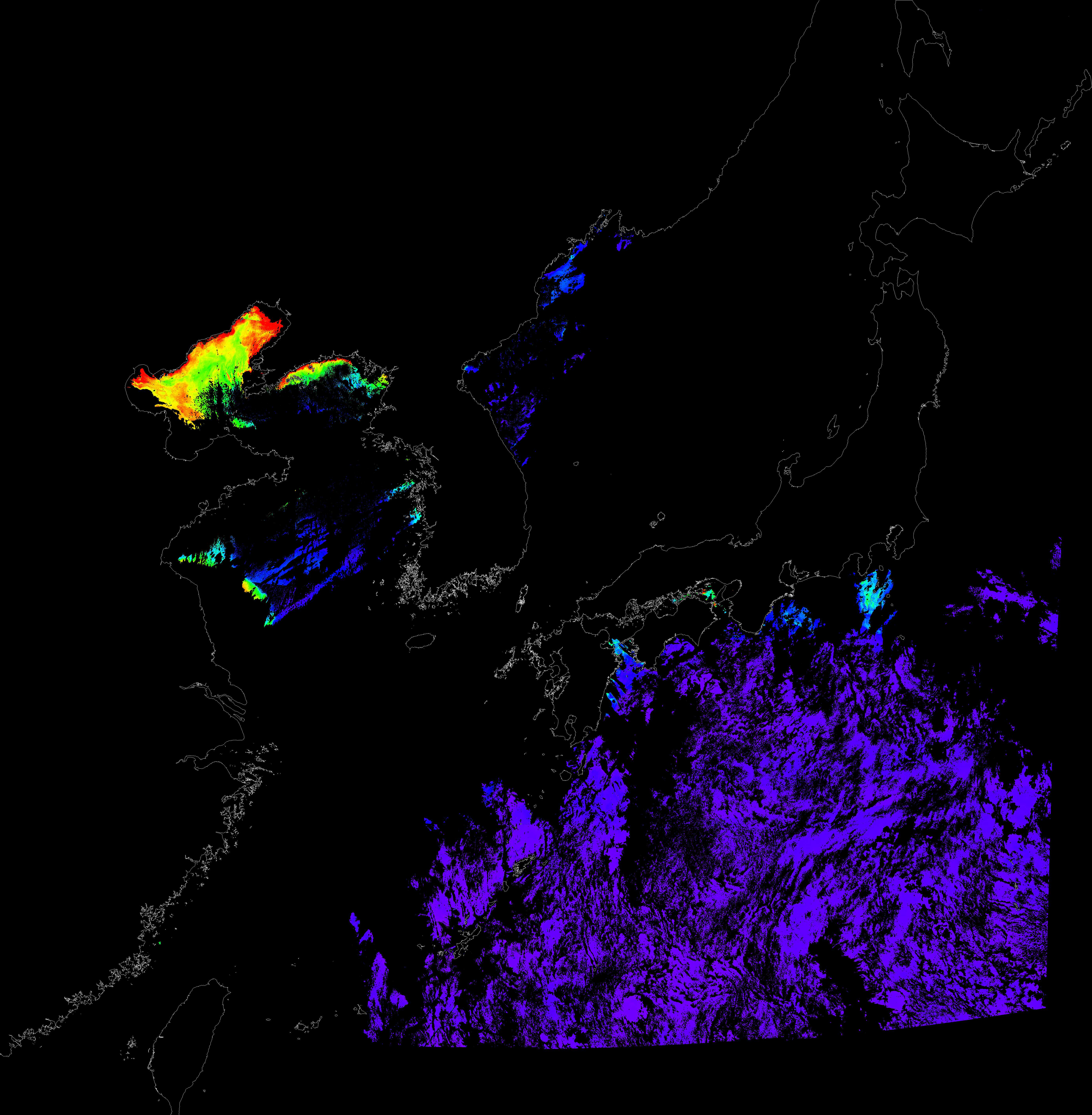 o 2016년 10월 08일 천리안 GOCI 클로로필 a 위성영상입니다.