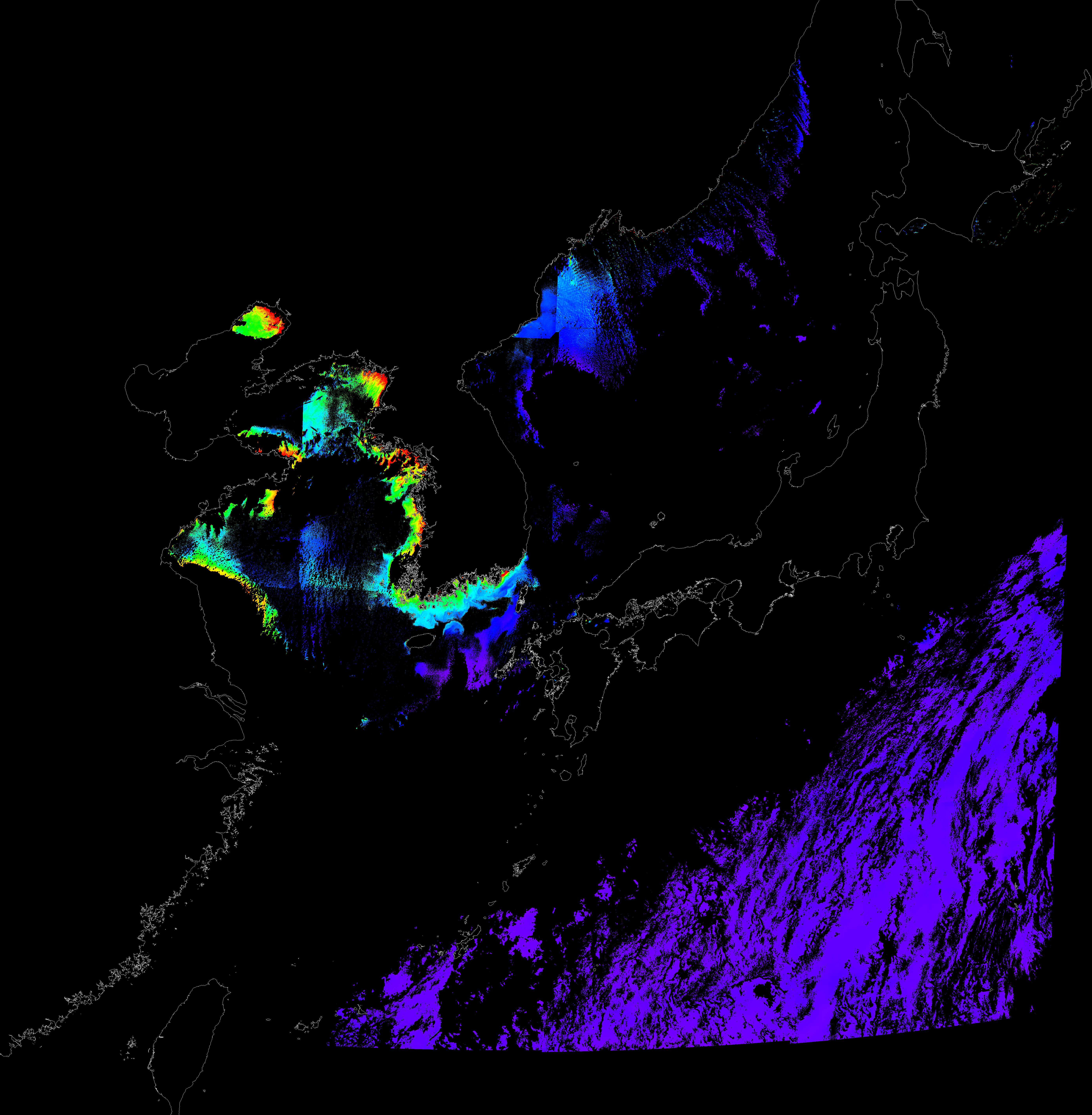 o 2016년 10월 09 천리안 GOCI 클로로필 a 위성영상입니다.