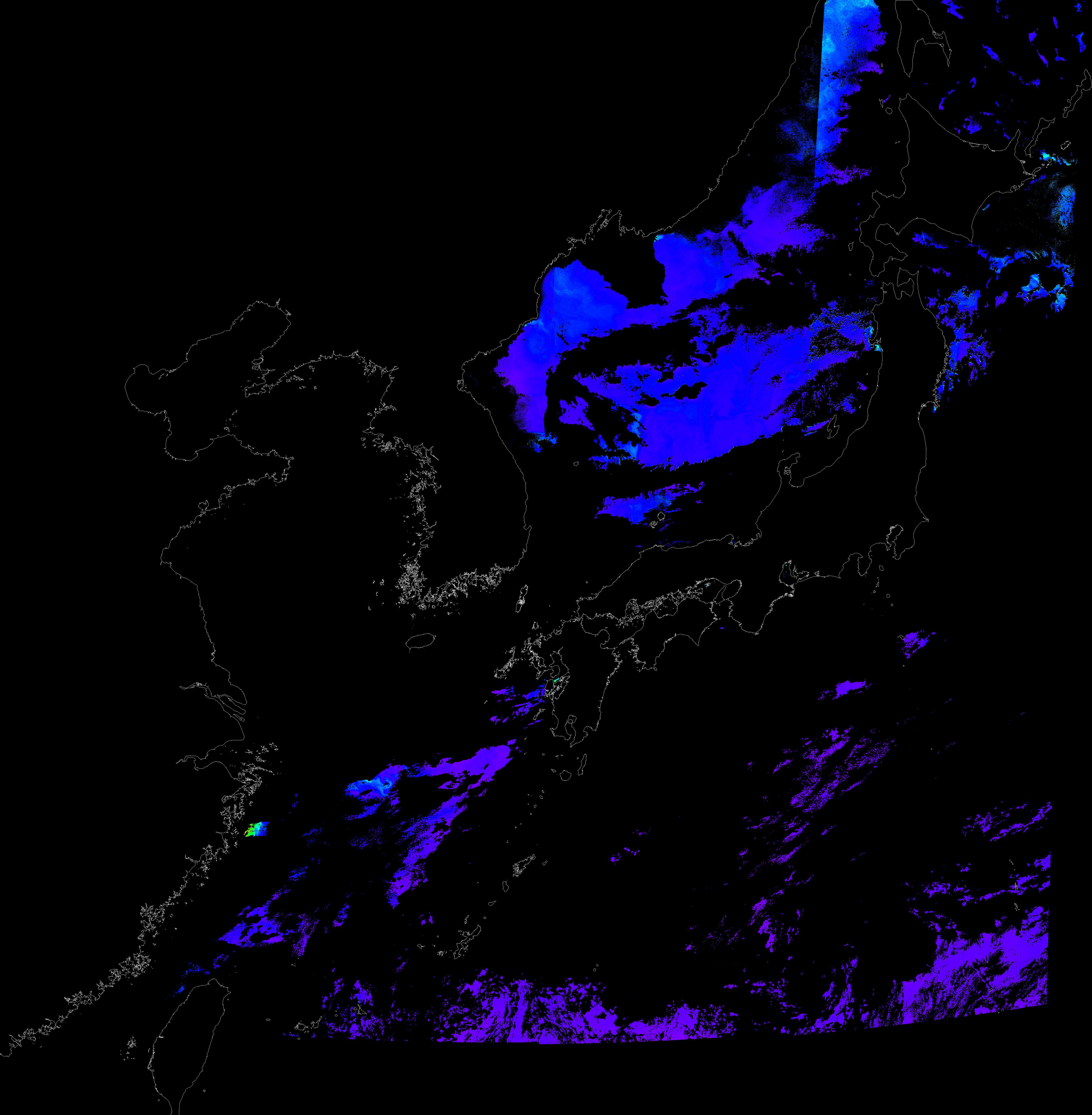 o 2016년 10월 13일 천리안 GOCI 클로로필 a 위성영상입니다.