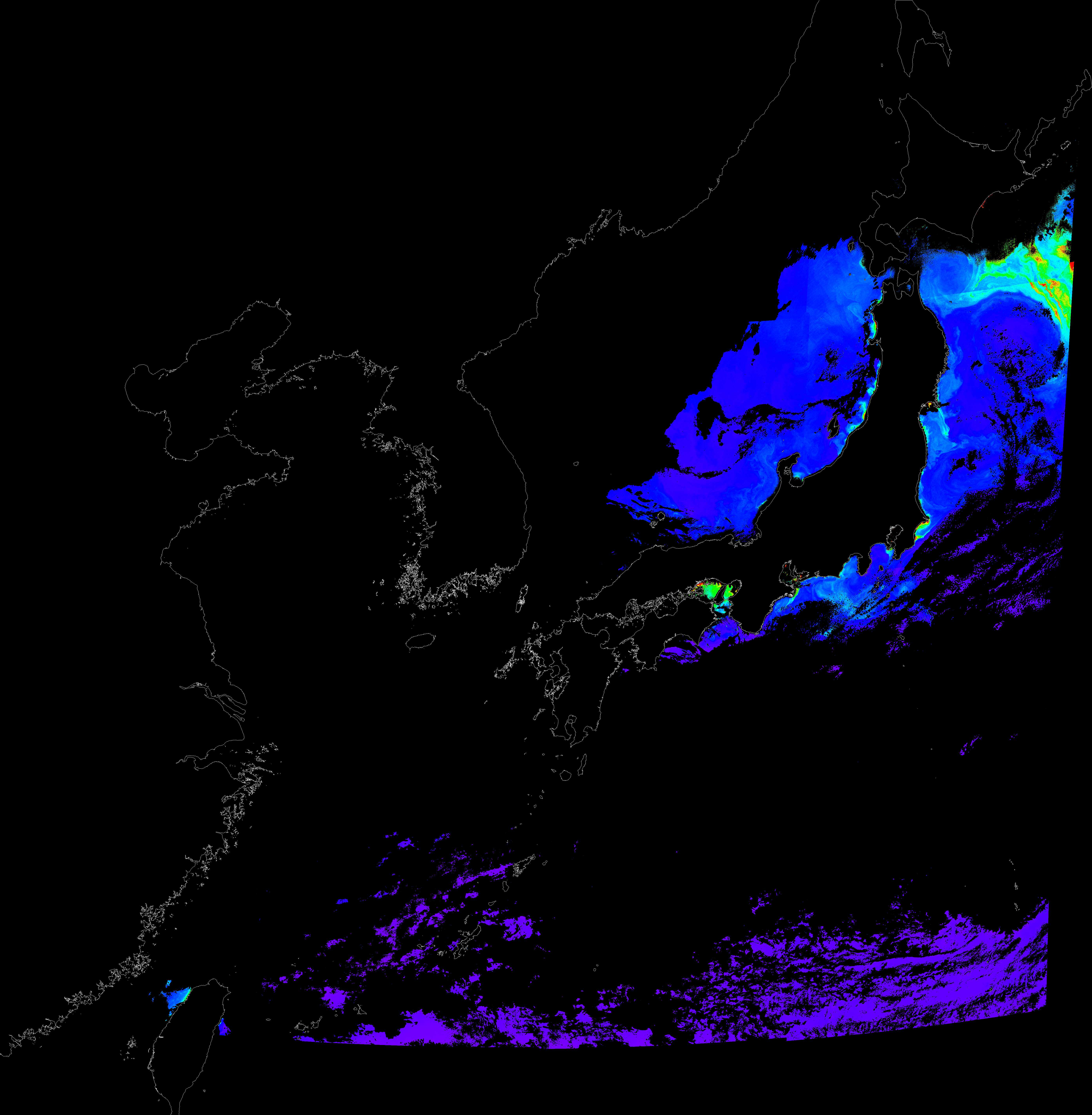 o 2016년 10월 15일 천리안 GOCI 클로로필 a 위성영상입니다.