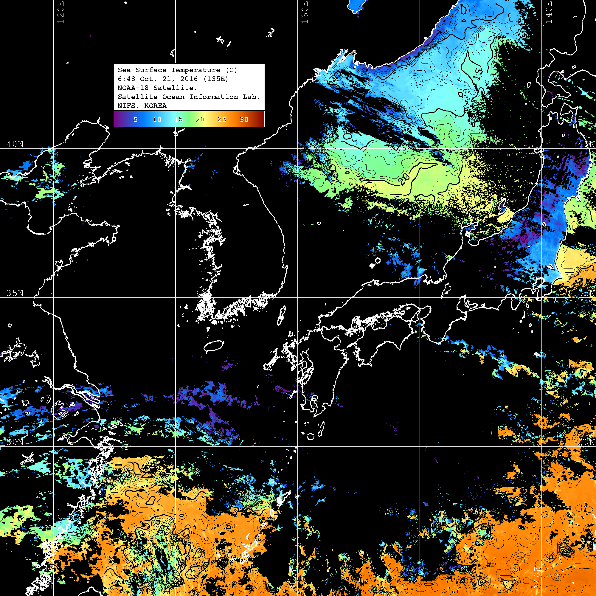 o 영상 시간 및 수온분포는 범례를 참고하시기 바랍니다.