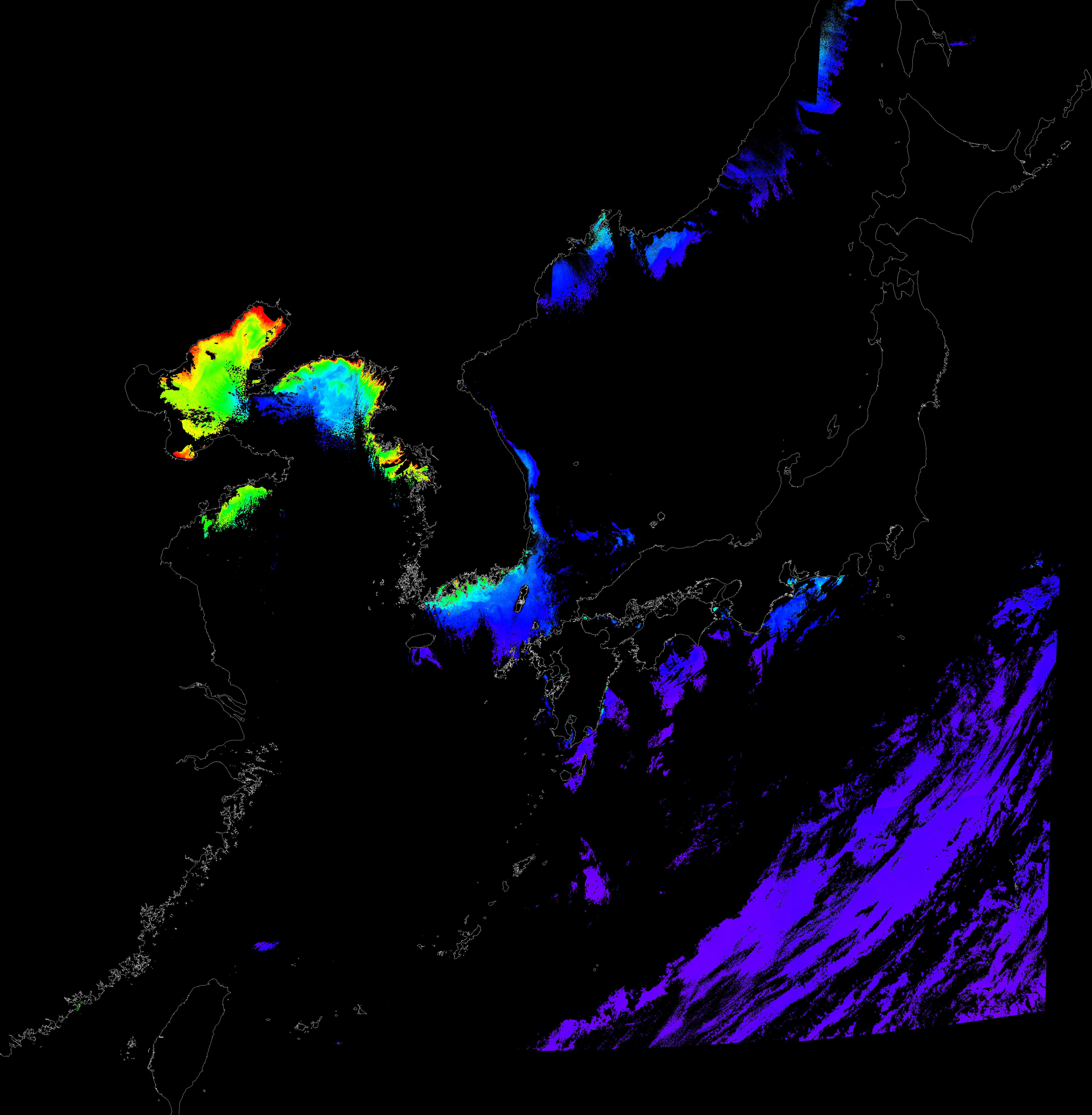 o 2016년 11월 01일 천리안 GOCI 클로로필 a 위성영상입니다.