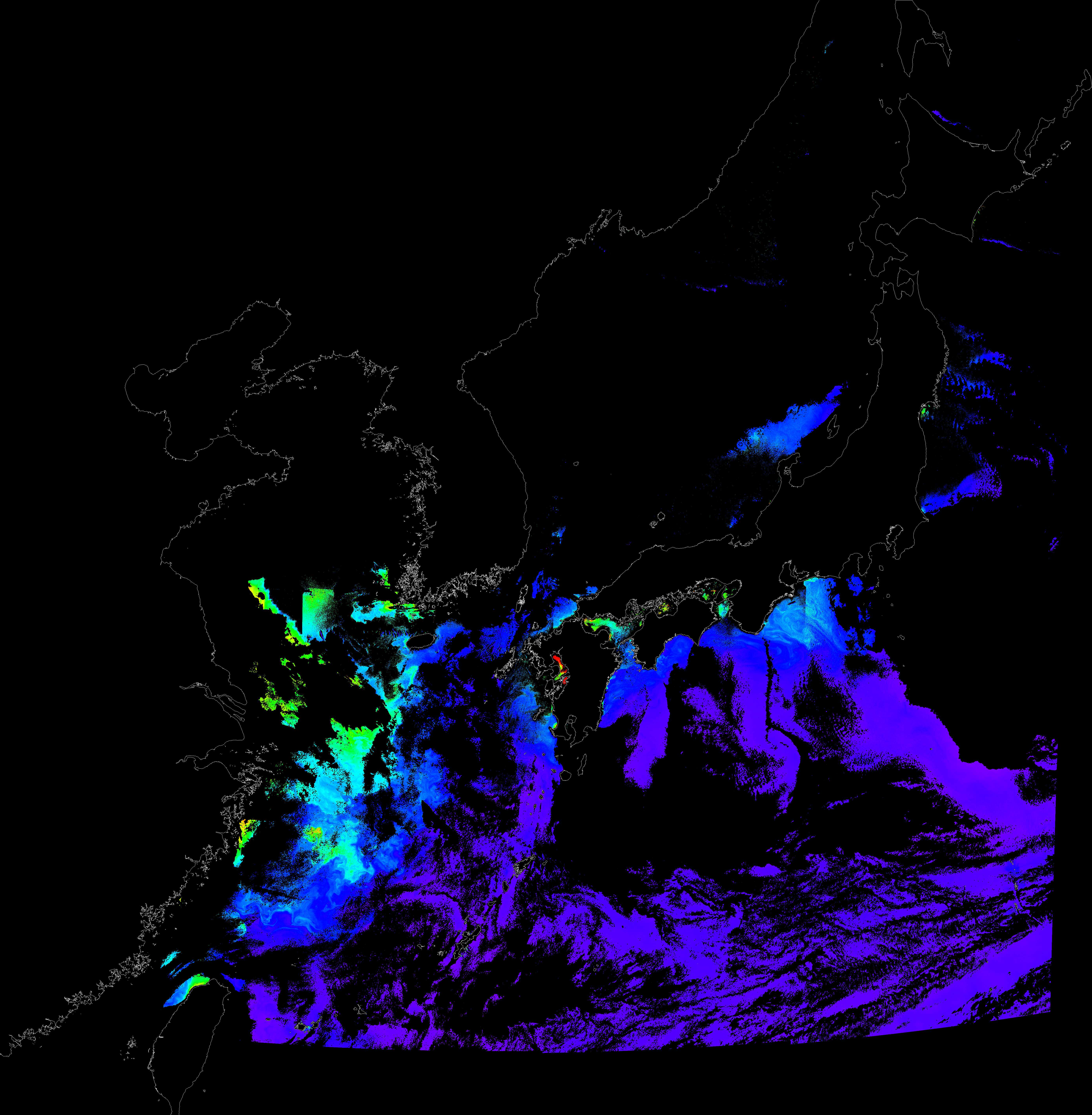 o 2016년 11월 16일 천리안 GOCI 클로로필 a 위성영상입니다.