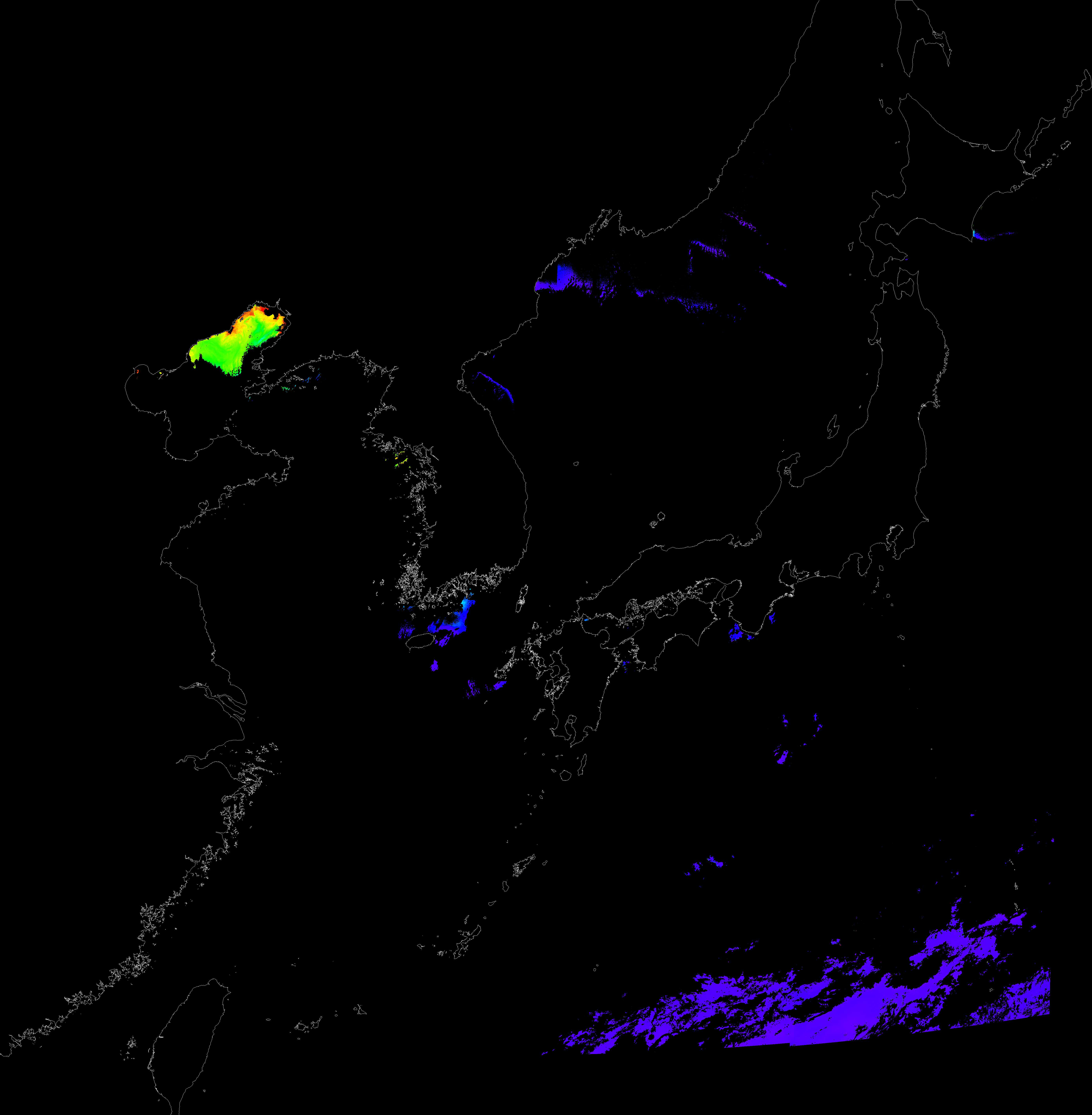 o 2016년 11월 23일 천리안 GOCI 클로로필 a 위성영상입니다.