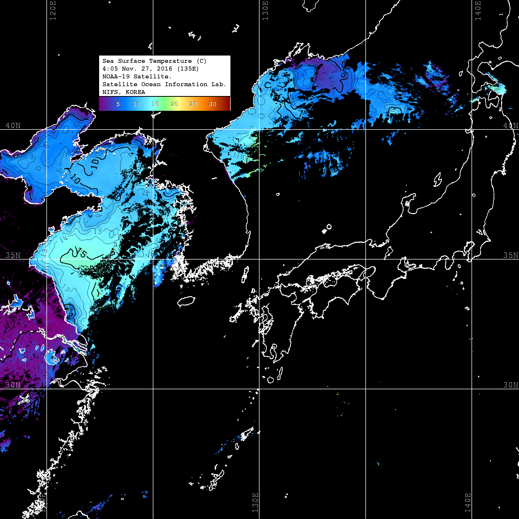 o 영상 시간 및 수온분포는 범례를 참고하시기 바랍니다.