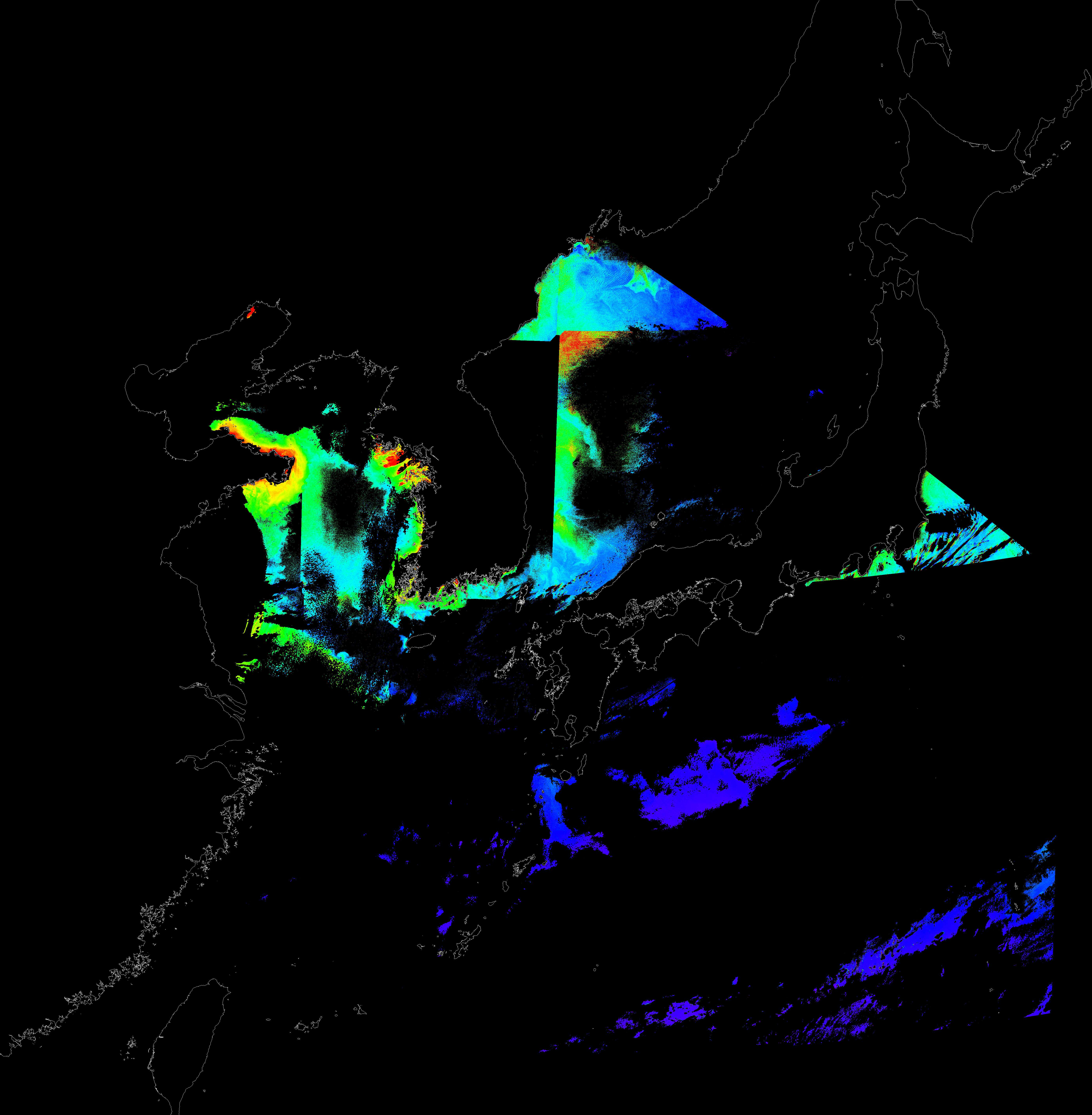 o 2016년 12월 02일 천리안 GOCI 클로로필 a 위성영상입니다.